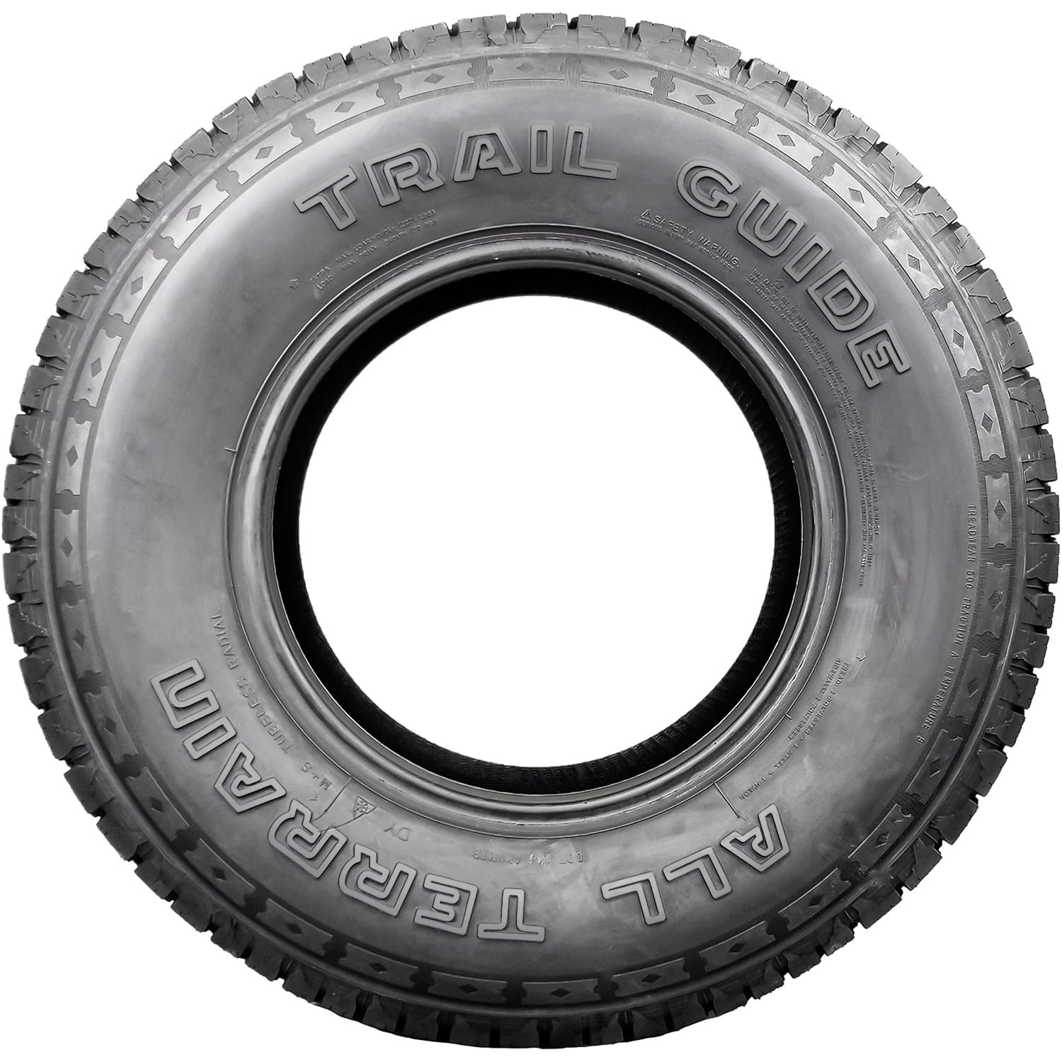 TBC Trail Guide All Terrain OVERVIEW The TBC Trail Guide All Terrain is an all terrain, all weather tire manufactured for SUVs and light trucks. TBC offers a 50,000 mile tread wear warranty with this tire model. The tire promotes great all weather traction. The tread design and the all weather tire compound work together to boost the dry, wet and winter weather road gripping capability. The tread’s optimal pattern with the high density siping and groove detail offers a constantly firm road grip, even in winter weather, while the compound maintains its flexibility throughout the year. The tread’s wide circumferential grooves prevent hydroplaning by dispersing water and slush from below the tire’s footprint. The better hydroplaning resistance and all weather traction upgrade the year round driving safety, in this manner. The tread’s staggered tread elements, wide grooves and open shoulder design, with the detailed siping pattern, enhance the model’s on- and off-road driving capability. In this manner, the tire offers a versatile usability. The tread allows the tire to conquer soft, loose and uneven terrain conditions with ease, while the tread elements find firm grip on all surface terrains. The staggered tread blocks and wide grooves also keep the footprint clean. They eliminate mud and snow and eject rocks stuck between the tread elements. This prevents the tire from being blocked from its contact with the road surface and resists stone retention from harming the tire’s casing. The Trail Guide All Terrain offers excellent controllability and durability. The tread’s constant road contact upgrades the steering responsiveness and driving stability on all terrain surface conditions. In this manner, the steering becomes faster and more precise in its response to the driver’s commands, while the structure is stabilized against the driving pressure affecting the model. The stronger internal structure and reinforced tire compound improve the tire’s load and driving durability, while also preventing off-road damage from shortening the tire’s service life. As a result, the tire is able to carry and withstand heavy loads with ease and it guarantees a secure driving experience in all weather. All weather tires receive the three mountain peak and snowflake (3PMS) symbol for their exceptional winter weather performance. They are all season tires with extra winter weather grip, in order to guarantee safer year-round durability. This ensures their true and secure driving ability throughout the year. Not all tire sizes are suitable for all vehicle types. Please refer to the item specifications for accurate information about vehicle type fitment for this particular size. Manufacturers recommend changing tires every 10 years. As long as tires are properly stored before they are sold, the year of their manufacture will not shorten their service life.