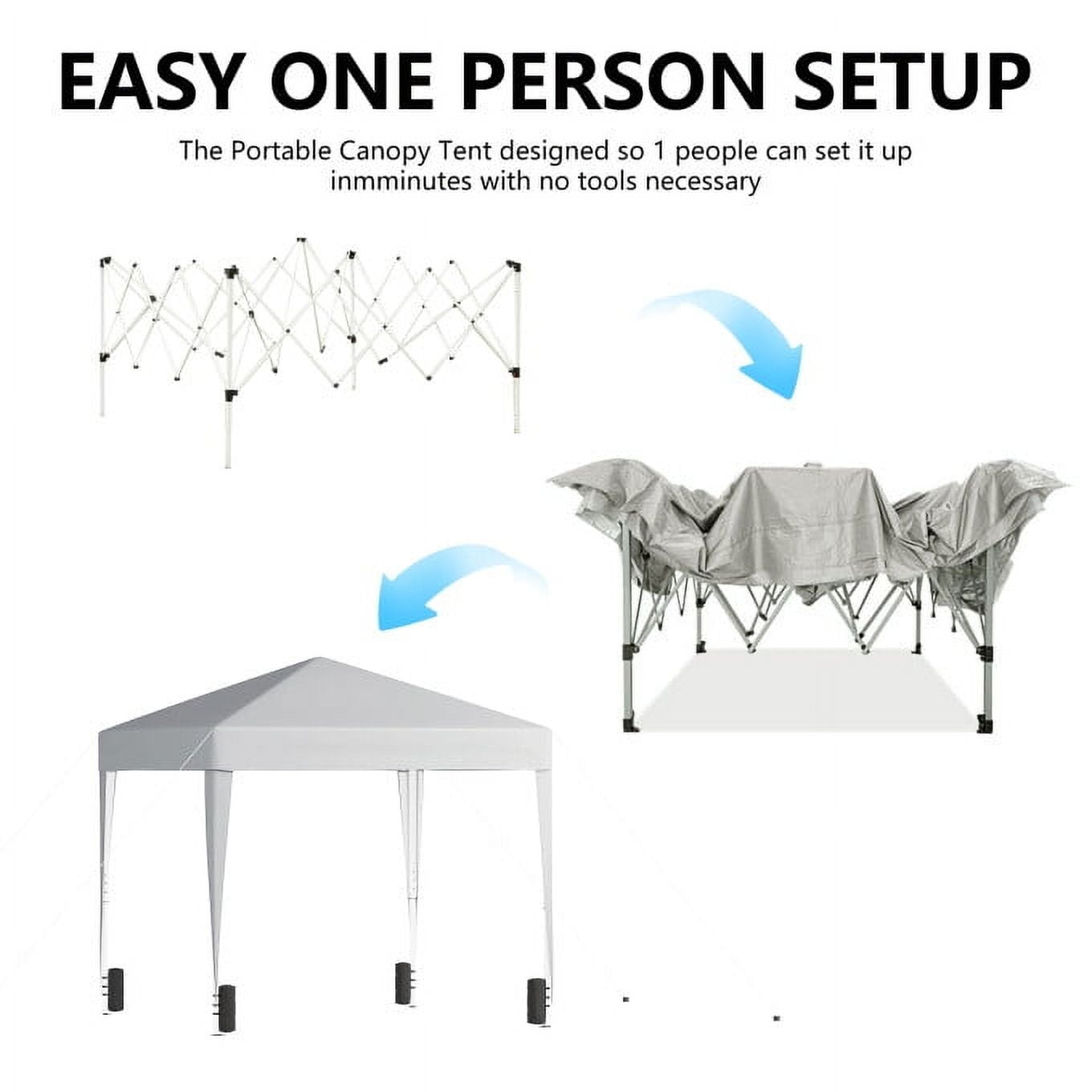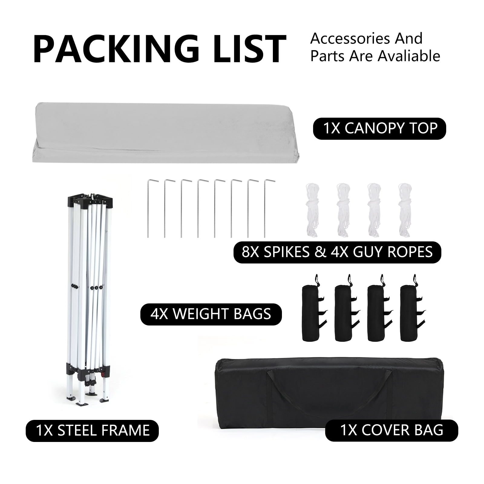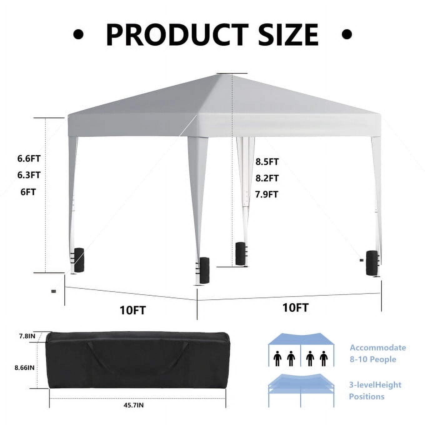 This pop up tent by TBKLEY is perfect for spring weddings or farmers market sellers to shield themselves from the hot sun! With a pop-up frame for easy transportation and a canopy that provides UV protection and insulation, our party tent is perfect for a variety of events including camping, family gatherings and picnics. With a powder coated steel frame, our tents are sturdy and built to last for a variety of events in the future. Features Total Length: 10’X10′(3m*3m)Outdoor canopy tent with four walls can accommodate up to 12 people.3 heights adjustable. From the ground to the top of the tent: 7.9 ft/8.2 ft/8.5 ft Quality Material: High quality 210D waterproof tent fabric blocks 90% of sunlight and provides UV protection. Suitable for outdoor use in both sunny and rainy days. Comes with waterproof carry bag, ropes and stakes for various activities. Easy Installation:1 person can install or remove it in minutes. Secure the canopy with the frame, then open the collapsible frame to adjust the height. Powder coated steel frame is easy to open and fold. Widely Used: This party tent is perfect for commercial or recreational use, such as parties, weddings, graduations, flea markets, small businesses, outdoor events, patio retreats, backyards, camping, picnics, sporting events, trade shows, bazaars, flea markets, yard sales, reunions, and more. Attention: This canopy tent is for temporary use. We recommend using the party tent in weather without heavy rain or strong wind.