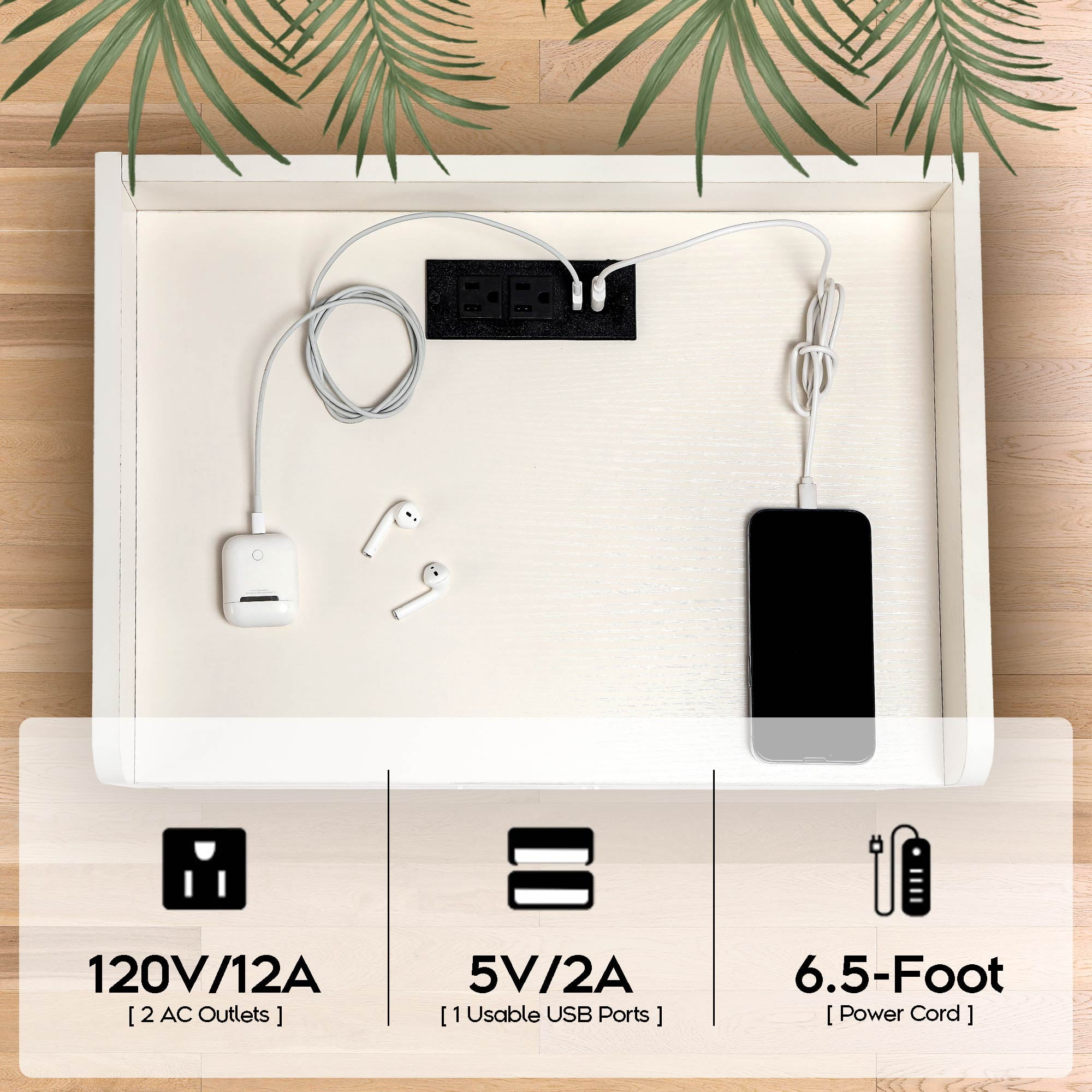 TC-Homeny Modern Storage Wood End Table with USB Charging Ports, White