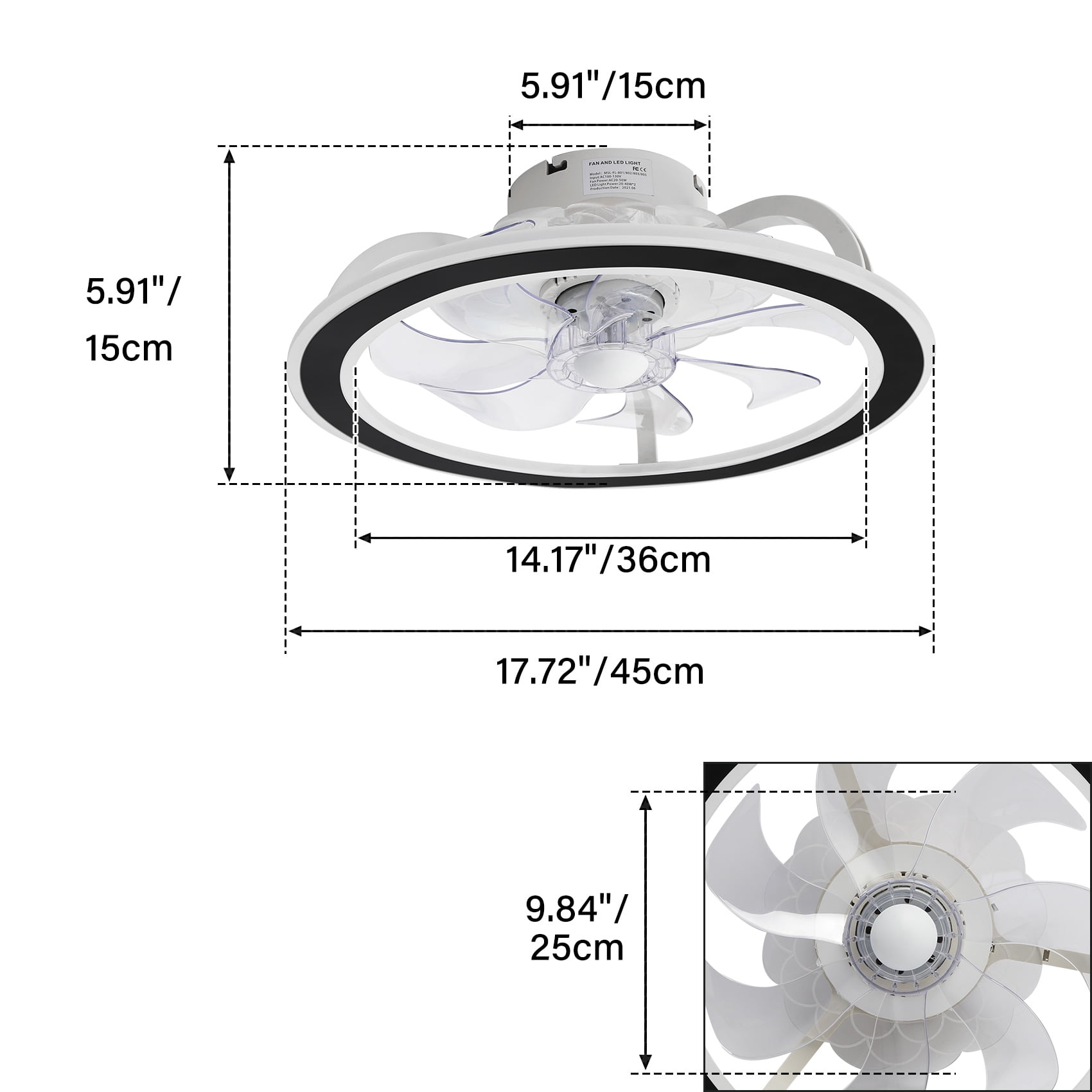 Update your room with our 18″ ceiling fan light kit. It is ability to match nearly any existing setting due to its modern style, make it the perfect addition to any room. With Whisper wind motor, Delivers whisper-quiet performance, perfect set for your bedroom. Low profile design, have no problem fitting in low ceiling as well. Remote control for fan speed level and light temperature, save you the time reaching out to the switch. SPECIFICATIONS: Voltage: 110V/60Hz Fan Power: 65W Light Power: 36W for cool and warm white, 72W for natural white Product diameter: 18″ Irradiation area: 100-160 square feet Package Net weight (approx): 10Lbs Style: Modern Main Material: Copper + ABS Plastic Main Color: White