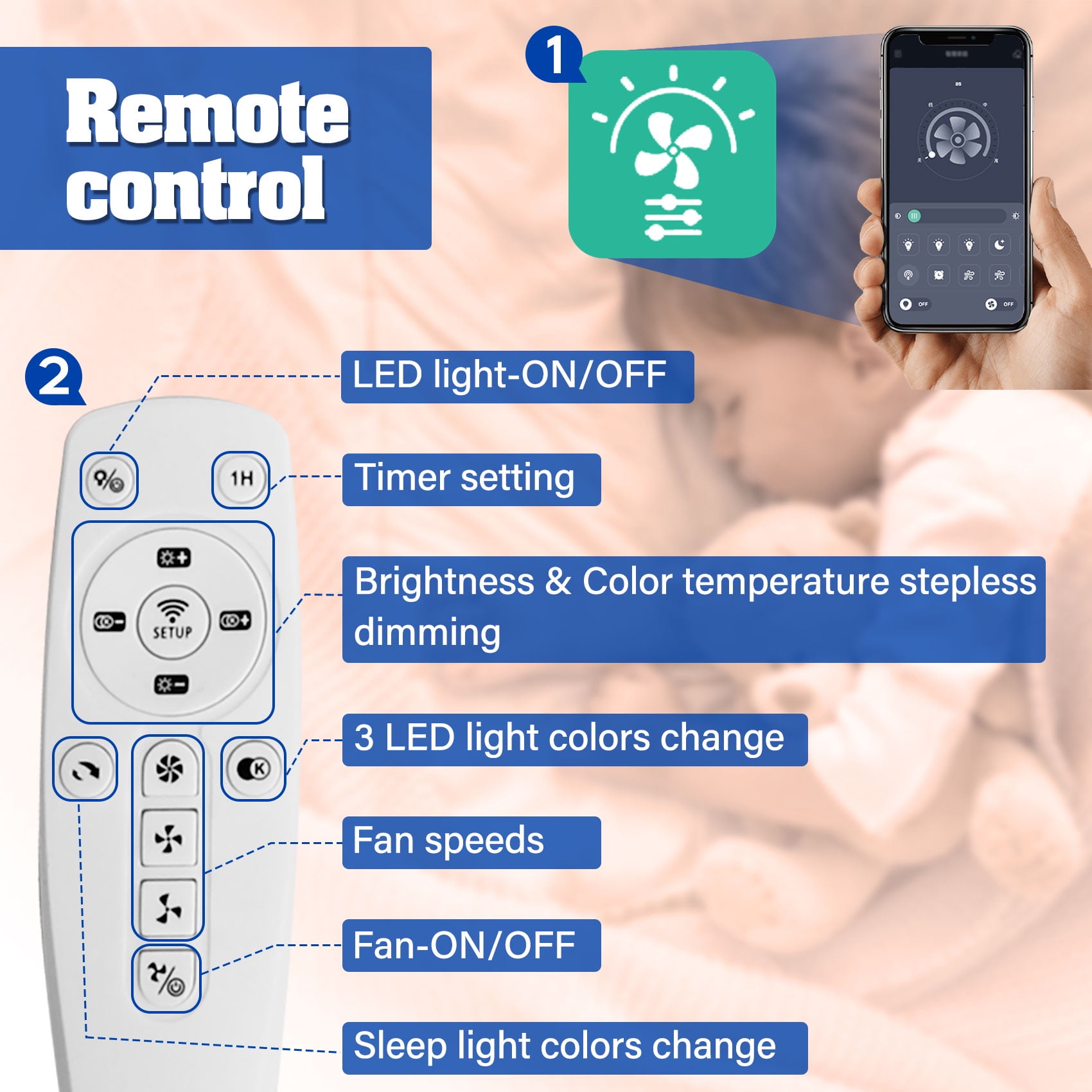 Whisper wind motor, delivers whisper-quiet performance Low Profile, Great for Almost Any Living Space Remote & app control for fan speed level and light temperature