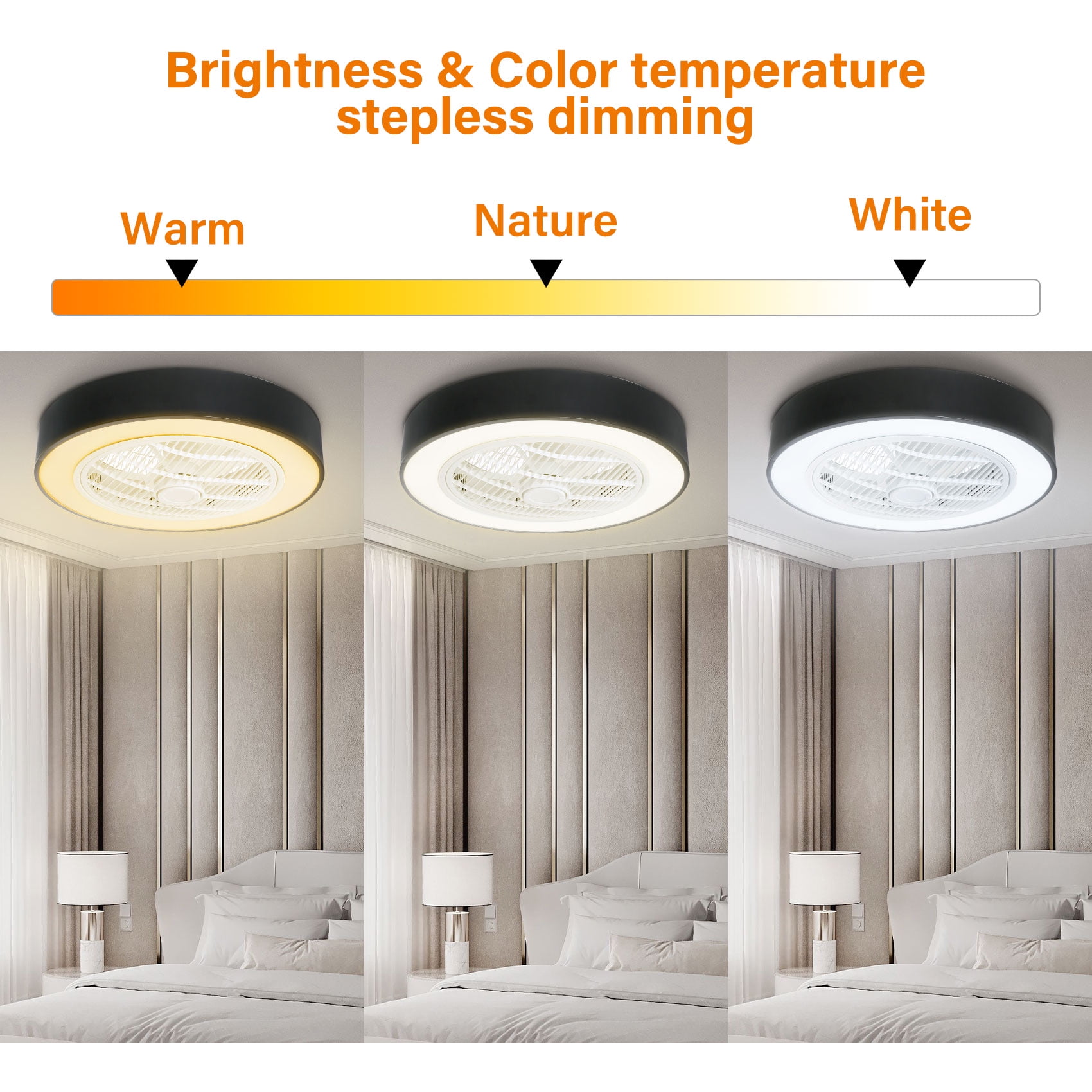 Whisper wind motor, delivers whisper-quiet performance Brightness & color temperature stepless changed. APP & remote control for fan speed level, light brightness and color temperature.