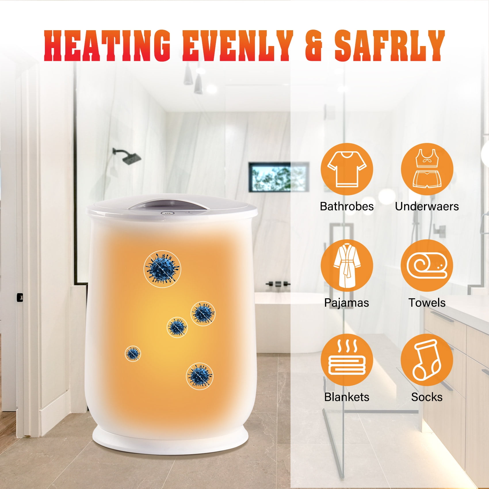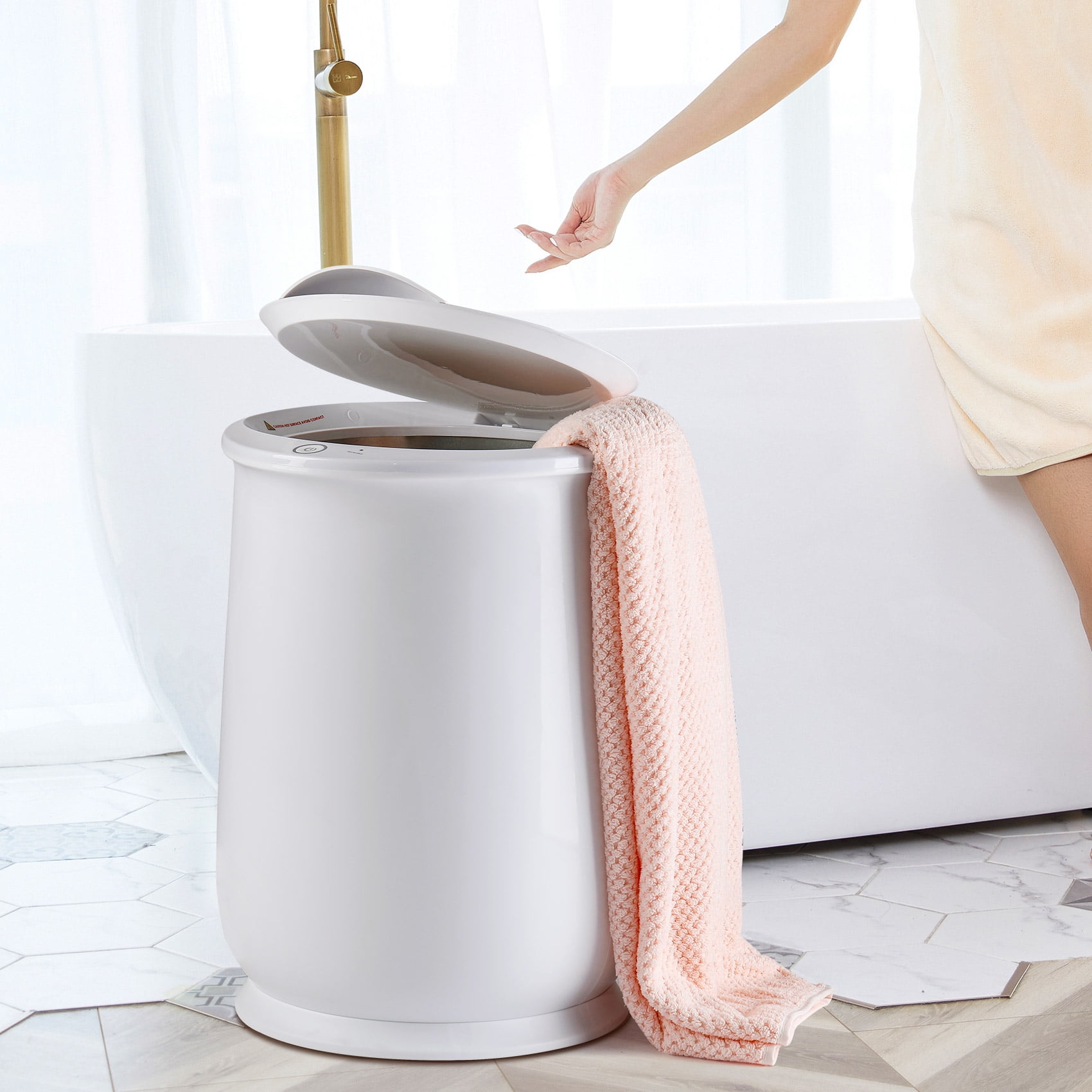 【Fast Heating Up】TCFUNDY towel warmer for bathroom heats up repidly in 1 minutes and reaches highest temperature in 6 minutes, so it can finsh warm up towels in 10 mins. It also provides you with up to 60 minutes of heating circulation, luxurious bathroom enjoyment. Allows you to enjoy the warm soft towel or blanket after a quick shower, leaving no cold spots. 【20L Ultra Large Capacity】Our towel wamer bucket has capacity of 20L, it can hold two 40”x70” oversized towels. It works for whole family warmth, suitable for heating towels, blanket, bathrobe, underwear, etc. Please attention that do not put any wet towels or clothes into the towel heater to avoid damage and ensure safety to use. 【One Button Control & Auto Shut Off】Toasty warm towels with the touch of a button, easy and high efficiency to operate. Auto shut off after a heating cycle in 60 minutes, safe to use. Putting in the towel in our towela warmer, you can easily enjoy your bath. 【Flip-Lid Compact Design】Upgrated and enhanced flip-lid design for more durable, You don’t have to worry about losing the lid because of naughty kids or pets. Stylish bucket design for moving and storage. Suitable for home, bathroom, swimming pool, shower, salon, spa, hotel, massage, baby care, elders care, etc. 【Best Gift for Your Family and Friends】 Towel warmer bucket helps you heat your towels or clothes evenly, you will get warm bath towels after your shower in winter, warm your pajamas before sleeping, you also can get cozy clothes when you wake up on cold mornings. The towel warmer is a special gift to your whole family and friends for Christmas, housewarming, wedding, shower or birthday.