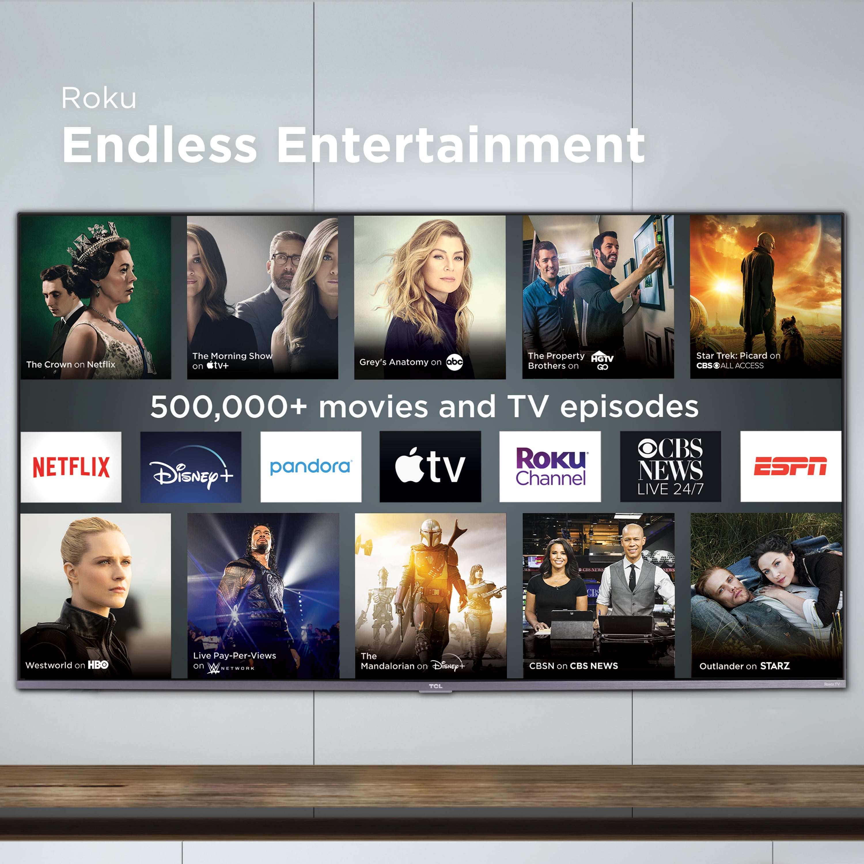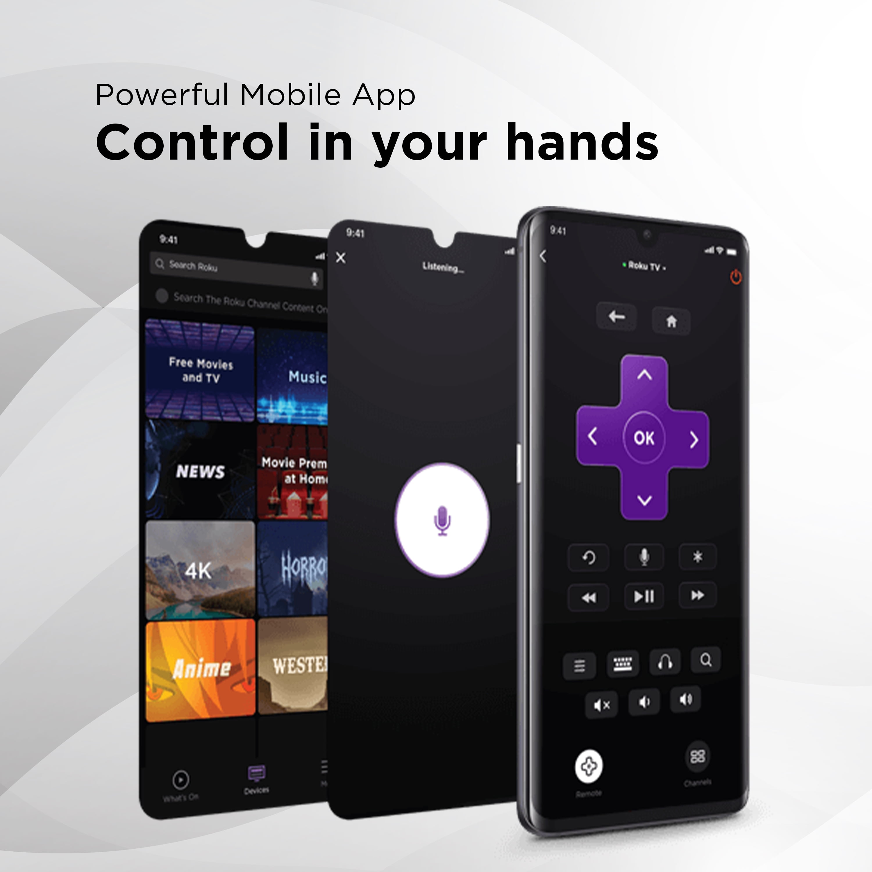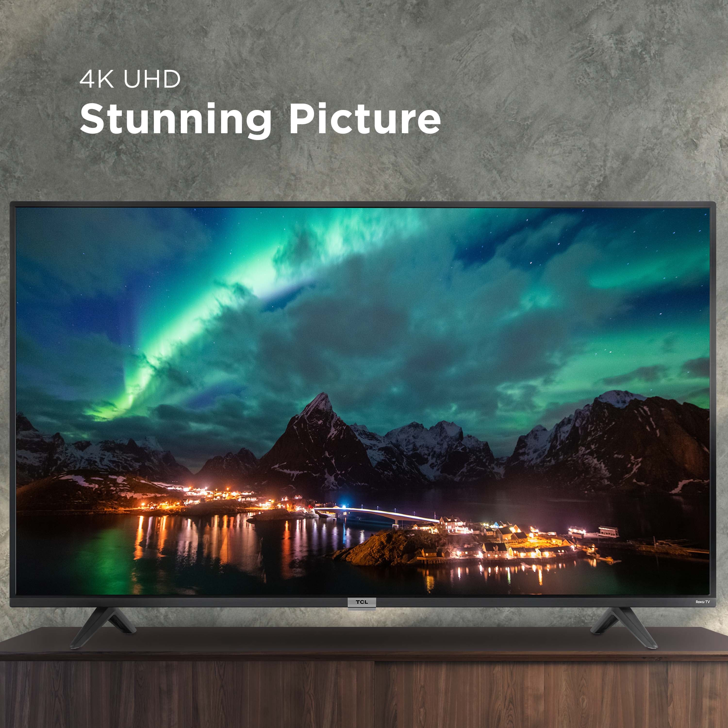 Stunning 4K Ultra HD: 4K resolution delivers stunning detail and a remarkable visual experience. High Dynamic Range: HDR delivers bright and accurate colors for a lifelike viewing experience. Thousands of Streaming Channels: Enjoy the over 500,000 movies and TV episodes available to stream plus sports, news, music, kids and family, food, science and tech, fitness, foreign language and so much more. Easy Voice Control: Find movie titles, launch or change channels, even switch inputs, using just your voice. Access to voice control feature available through the Roku mobile app, compatible third-party voice assistant devices and voice-enabled remote controls that can be purchased separately. Works with both Amazon Alexa and Google Assistant. Simple, personalized home screen: Your favorite broadcast TV, streaming channels, gaming console and other devices are front-and-center. No more flipping through inputs or wading through complicated menus. Like apps on a smartphone, all your favorites are at your fingertips from the instant you turn it on. Cord Cutting Made Easy: Cord cutters can access free, over-the-air HD content thanks to the advanced digital TV tuner with live channel guide or watch live TV from popular cable-replacement services like YouTube TV, Sling, Hulu and more. Advanced Digital Tuner with Live TV Channel Guide: Easily browse and enjoy 100+ live channels with news, sports, cooking, lifestyle entertainment, and more. Add an HDTV antenna to see your local network channels and free streaming channels all in one place. Easy-to-use remote: The super-simple remote—with about half the number of buttons on a traditional TV remote—puts you in control of your favorite entertainment. 11ac Dual-band WiFi & Ethernet port: Get fast and easy access to your favorite content with the dual-band WiFi connection or plug into the Ethernet port. 4 HDMI inputs (1 ARC): Connect all your favorite devices through the four HDMI inputs that 1 HDMI ARC to easily sync audio and video sources and deliver better quality sound. Premium design: A black finish and quad pedestal stand lend style and sophistication to your home theater. Roku Search: Easily search across top streaming channels by title, actor, or director—all from one place—with Roku Search. Free Roku remote app: Transform your smartphone or tablet into a full-function Roku remote with voice control, the ability to browse or add new channels and evenenjoy TV audio on headphones connected to your mobile device for private listening.