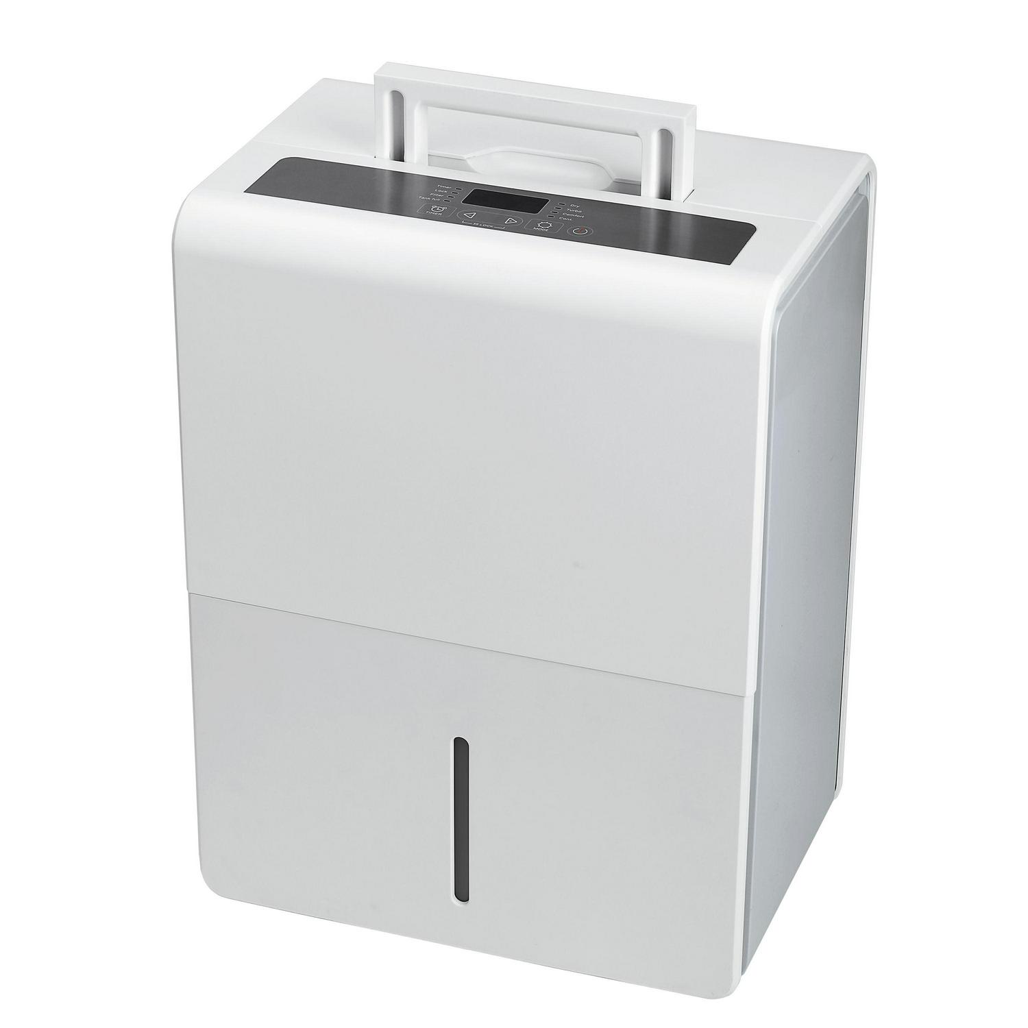 Protect your home from excess moisture with the TCL 4,500 Sq. Ft. 50 Pint Dehumidifier. This Energy Star rated dehumidifier comes equipped with an adjustable humidity display, preset modes, and two fan speeds on the unit s control panel. With smart capabilities, you can control your dehumidifier with simple voice commands using Alexa and Google Assistant. You can also use the TCL Home app to remote control, change the humidity level, set schedules, switch modes and speeds, and more, all from your smartphone. The 24-hour Timer allows you to turn your dehumidifier on or off when you need to, and the bucket full indicator will let you know when the tank needs to be emptied. The washable and reusable filter helps protect the life of your dehumidifier while also reducing large airborne particles like dust and pet hair. Plus, the dehumidifier only takes a few minutes to set up and can easily glide from room to room in seconds. Enjoy precise humidity control and promote healthy air quality with TCL s smart line of dehumidifiers.