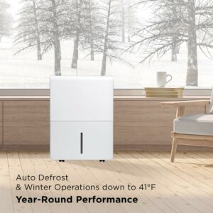– Prevent Freezing with Auto Defrost: Your dehumidifier’s coils are designed to not freeze up even in cold temperatures (down to 41° F) with Auto Defrost.