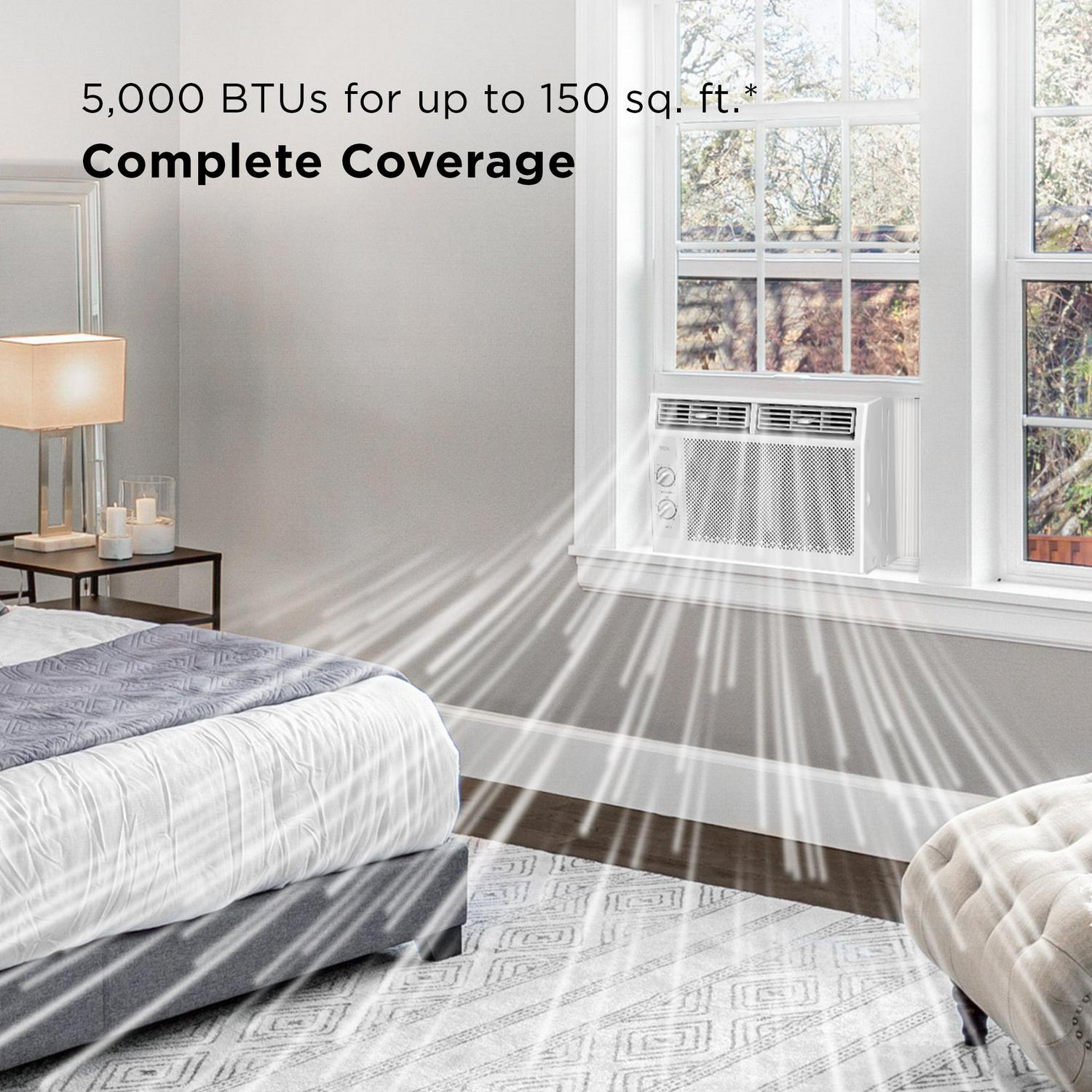 – Powerful Cooling Capacity: The 5,000 BTU window air conditioner is powerful enough to cool rooms up to 150 sq. ft. and features multiple fan speeds that allow you to choose your level of comfort.