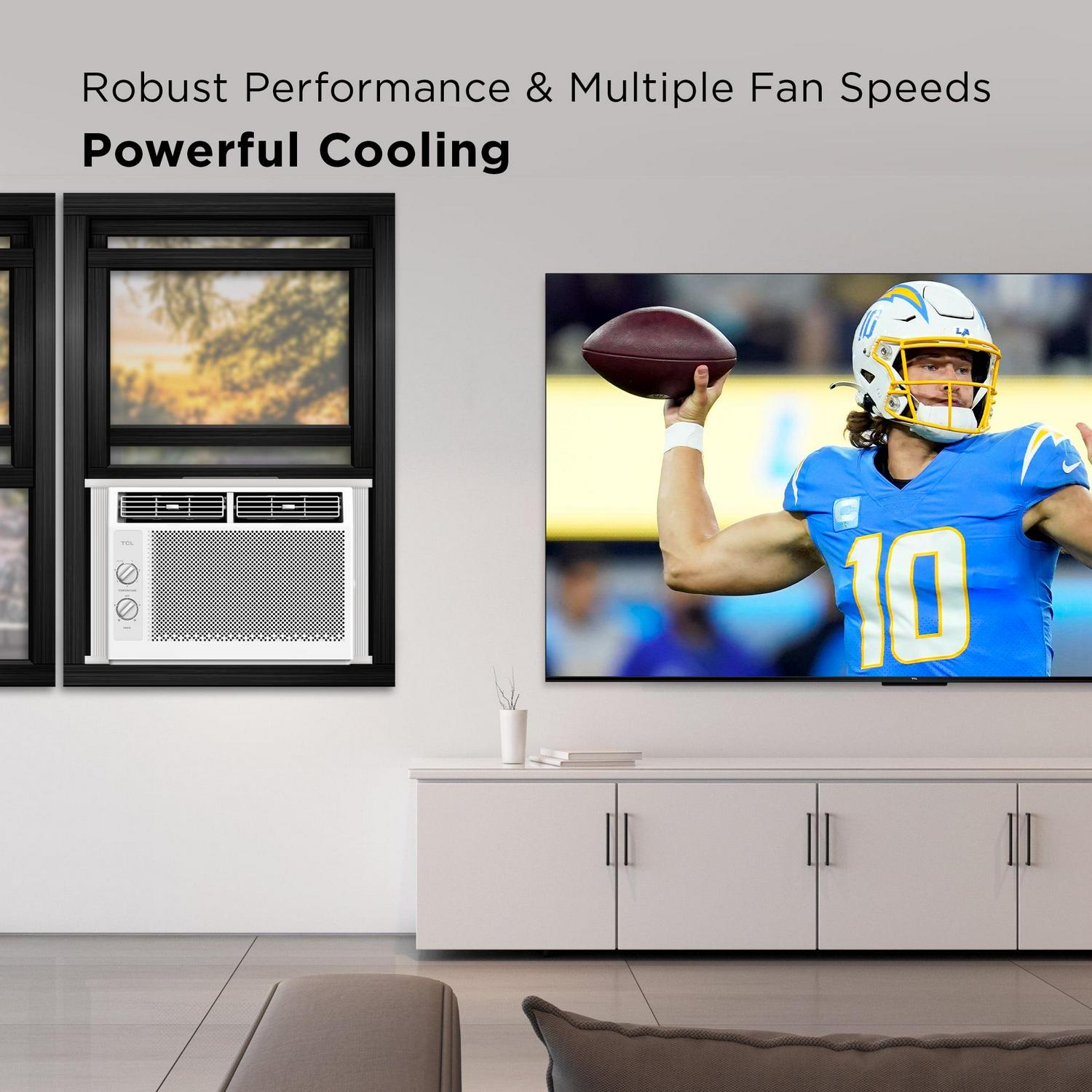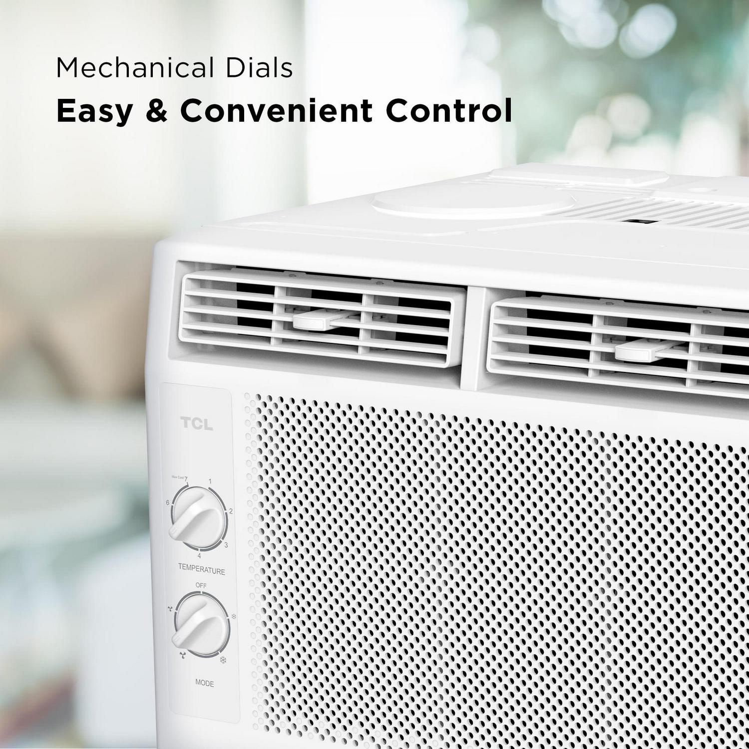 Stay cool and in control with the powerful cooling capacity of the TCL 5,000 BTU Window Air Conditioner that can cool rooms up to 150 sq. ft. The washable and reusable filter helps protect the life of your AC while also reducing large airborne particles like dust and pet hair. The included guided instructions mean you don t have to be an expert technician to set up your window AC. Once set up, the mechanical knobs make it easy to set your room to the perfect temperature. It s time to enjoy your home the way it was meant to be.