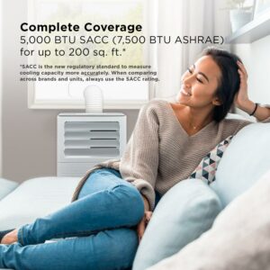 – Powerful Cooling Capacity: The 5,000 BTU SACC (7,500 ASHRAE) BTU portable air conditioner is powerful enough to cool rooms up to 200 sq. ft. and features multiple fan speeds that allow you to choose your level of comfort.