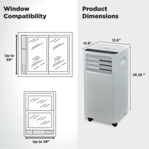 – Set Up in Minutes. Move Around in Seconds: Set up your portable AC unit in minutes using the included hose and window kit. TCL portable ACs feature handles and wheels for quick moves from room to room. (Size: 12.60in x 12.60in x 26.38in)
