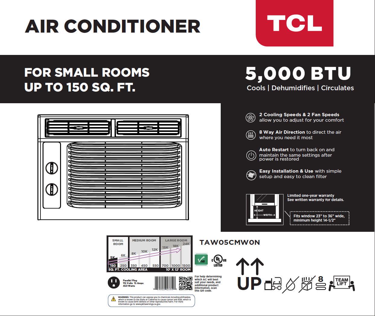 TCL 5,000 BTU WHITE MECHANICAL WINDOW AIR CONDITIONER: TAW05CMWON