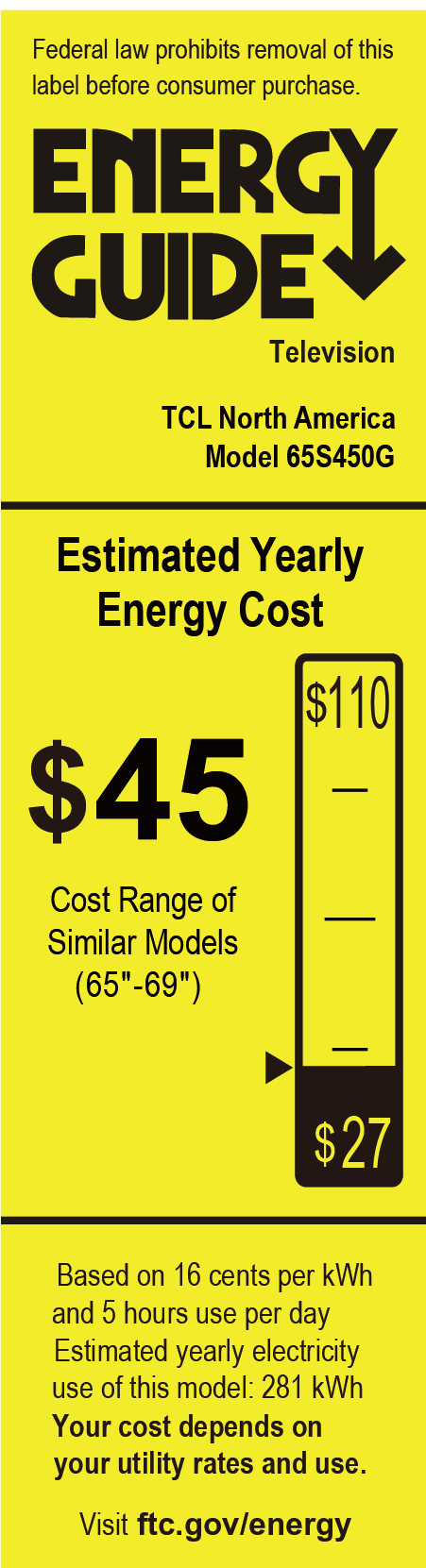 TCL 65” Class S Class 4K UHD HDR LED Smart TV with Google TV, 65S450G