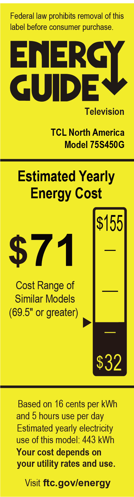TCL 75” Class S Class 4K UHD HDR LED Smart TV with Google TV, 75S450G