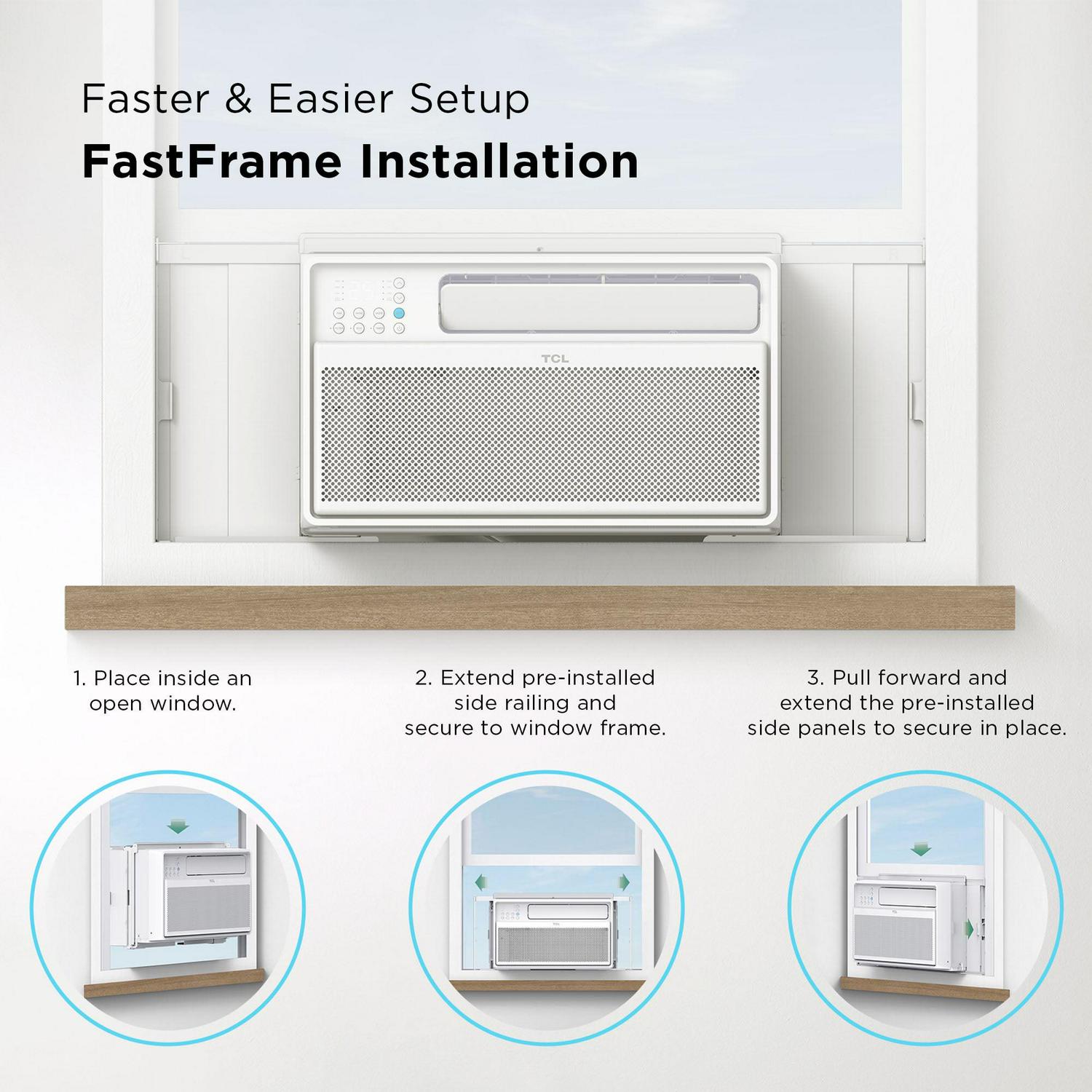 Experience refreshingly cool air quieter than ever before with the innovative Q-Series Smart Inverter Window AC from TCL. The Q-Series features a powerful 8,000 BTU cooling capacity perfect for rooms up to 350 sq. ft.. With its sound-reducing technology, Q can deliver amazing performance that s surprisingly quiet (as low as 42dB on Quiet mode) for a better overall experience. You will also enjoy faster and more consistent cooling when compared to traditional ACs with TCL proprietary Smart AI Inverter technology. The Smart AI keeps the temperature at your desired temperature (within +/- 1 degree F) throughout the day and saves up to 37% on energy consumption, eliminating frustrating hot and cold spikes that occur with traditional compressor ACs. The Q-Series pre-assembled design also makes the setup process incredibly easy with added stability so you can open the window on those perfect days or close the window to take advantage of its robust cooling. With smart capabilities, you can control your Q-series AC through the TCL Home App for Android and iOS devices, Alexa and Google Assistant-enabled devices, or your TCL Google TV. With all this and more, you can enjoy your home in peace.