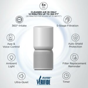 – ADVANCED CONTROLS FROM YOUR SMARTPHONE: The user-friendly app allows you to control your air purifier from anywhere, right from your smartphone. Check the air purifier status, view air quality history, change fan speeds, control ambient lighting, and more.