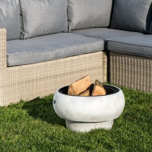 – CLASSIC DESIGN WITH A MODERN TWIST: The classic word-burning stone look of this round fire pit is given a chic modern upgrade with a light gray faux concrete finish and subtly tapered pedestal base that elevates the look of any outdoor décor.