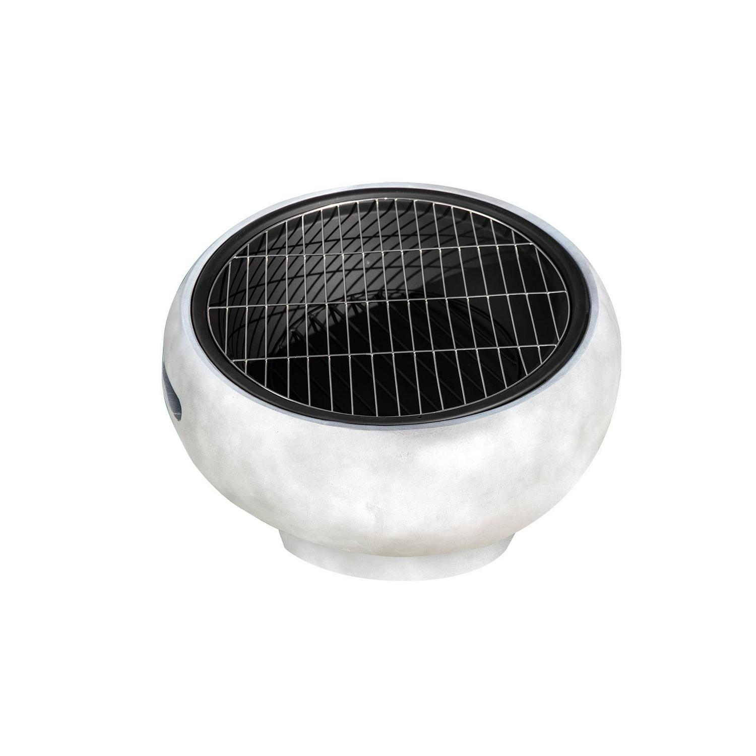 Enjoy the nostalgia of a true campfire with this stylish wood-burning fire pit by Teamson Home, roasting marshmallows, making smores, and creating new memories to cherish. Its included steel poker, spark screen, and grill grate allow it to also function as an outdoor barbeque grill, making it an essential for any outdoor entertainment space. Its classic word-burning stone look is given a chic modern upgrade with a light gray faux concrete finish and subtly tapered pedestal base, elevating the look of your porch or patio. Classic and compact, this round fire pit measures 21 in diameter and 18.5 tall to seamlessly suit any outdoor area, large or small!