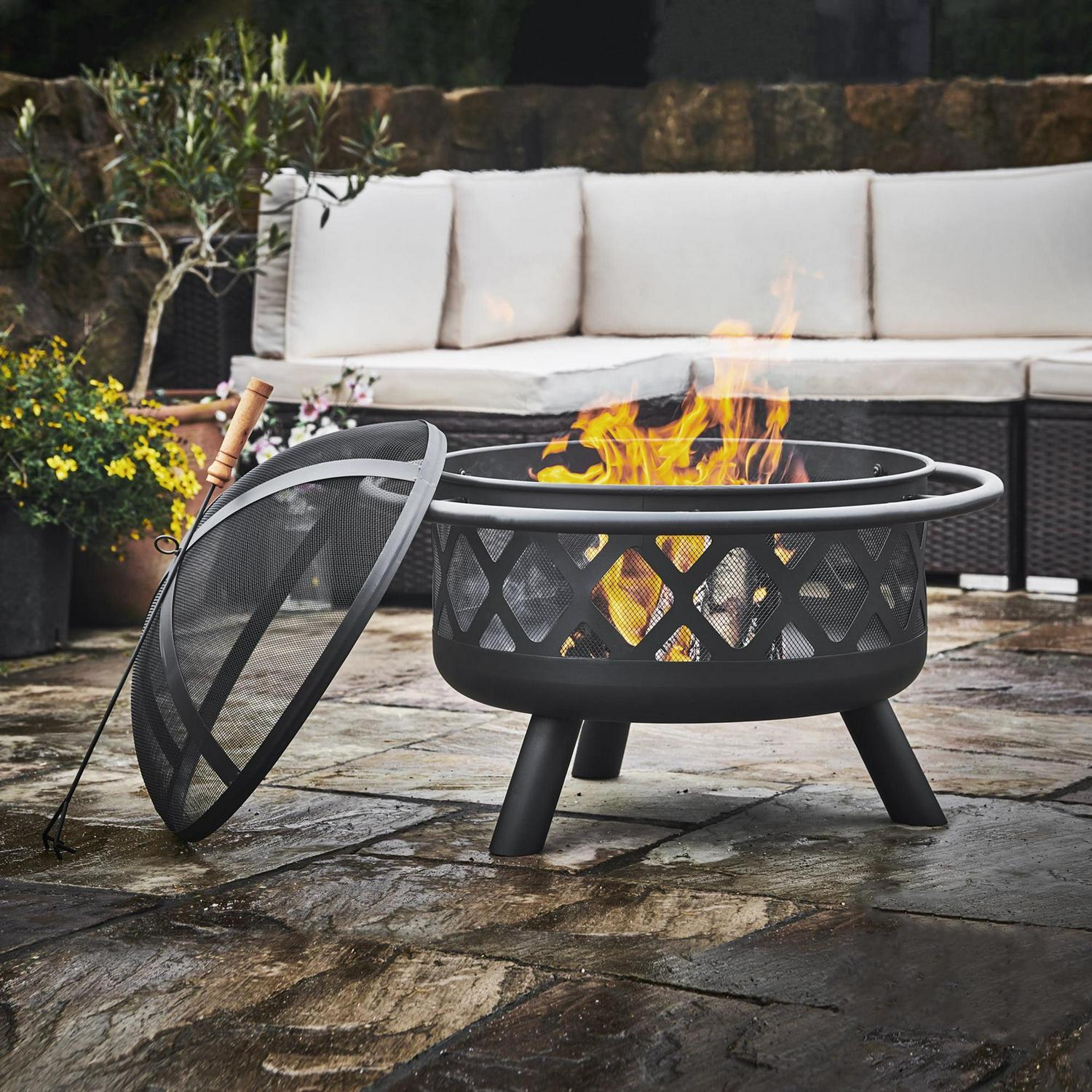 - Size: Outdoor 30-Inch Round Steel Wood Burning Fire Pit