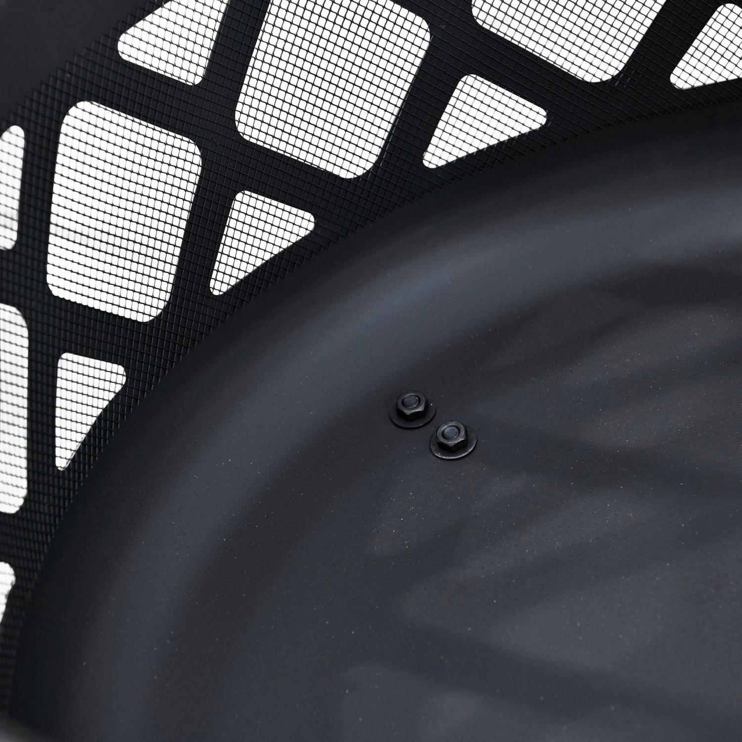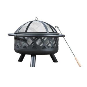– 30″ WOOD BURNING FIRE PIT: Features a modern steel-mesh look with intricate details to add warmth and a calming atmosphere to your porch, deck, or yard.