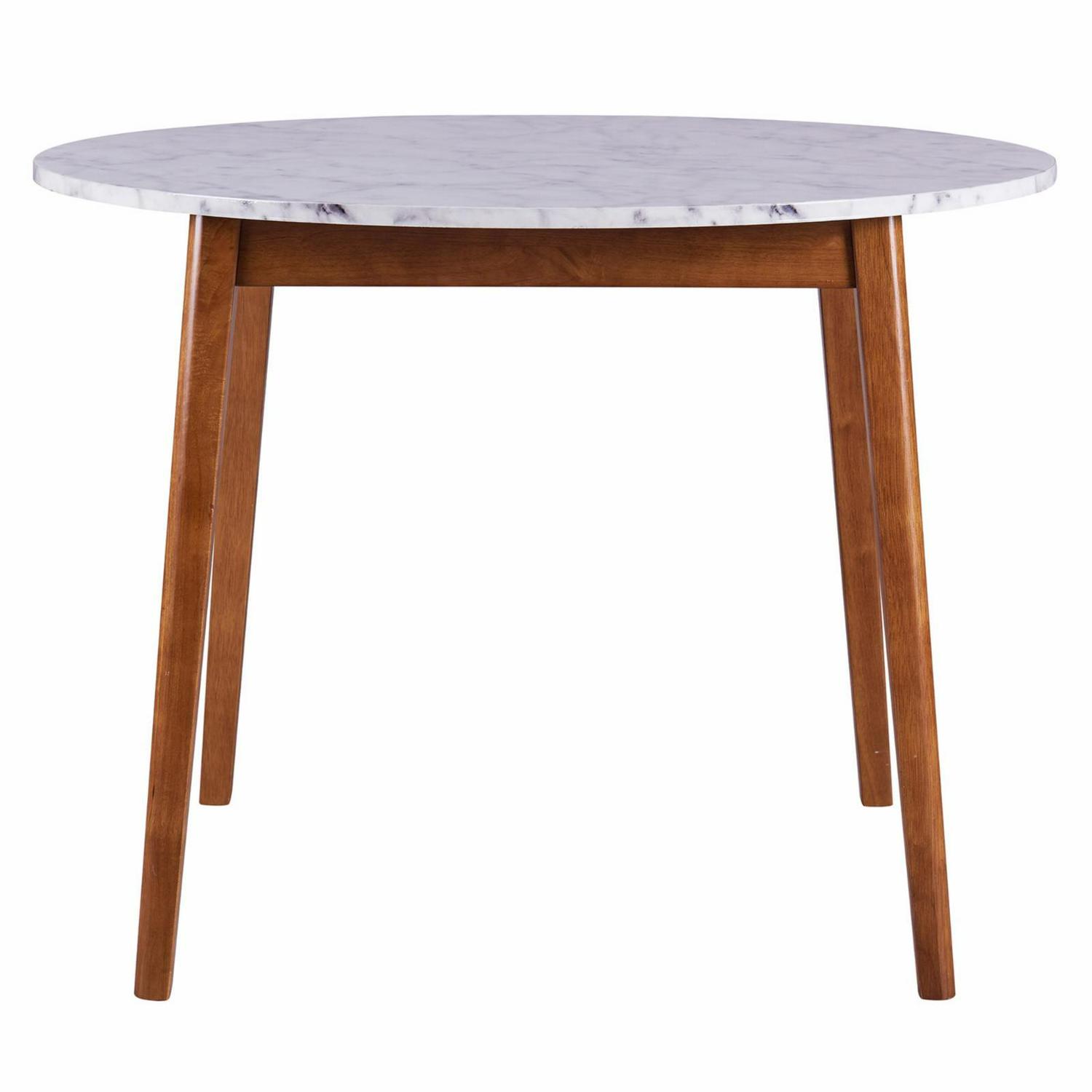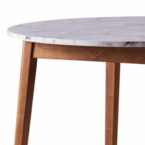 Teamson Home Ashton Wooden Round Dining Table with Faux Marble Top, White/Walnut