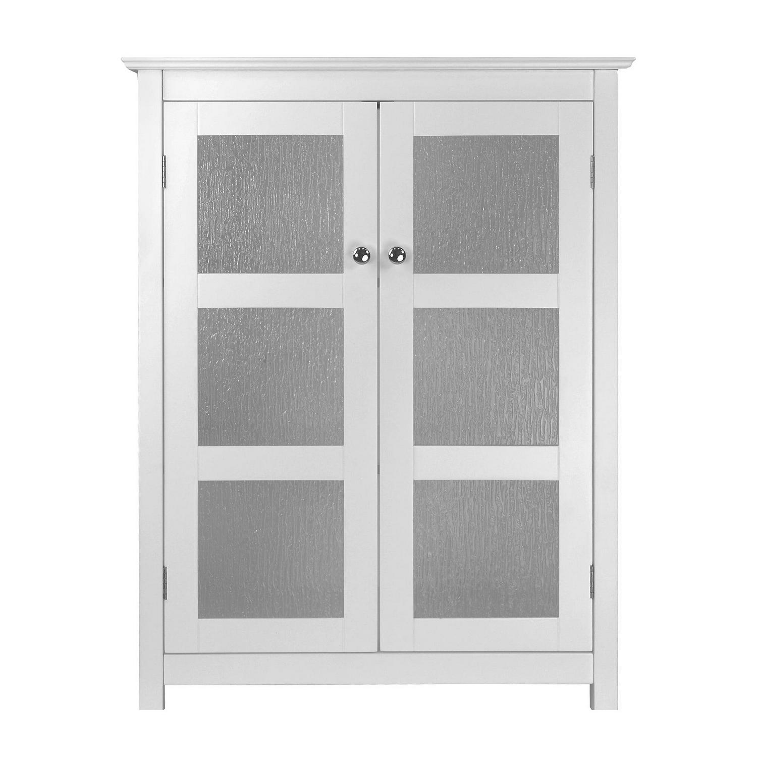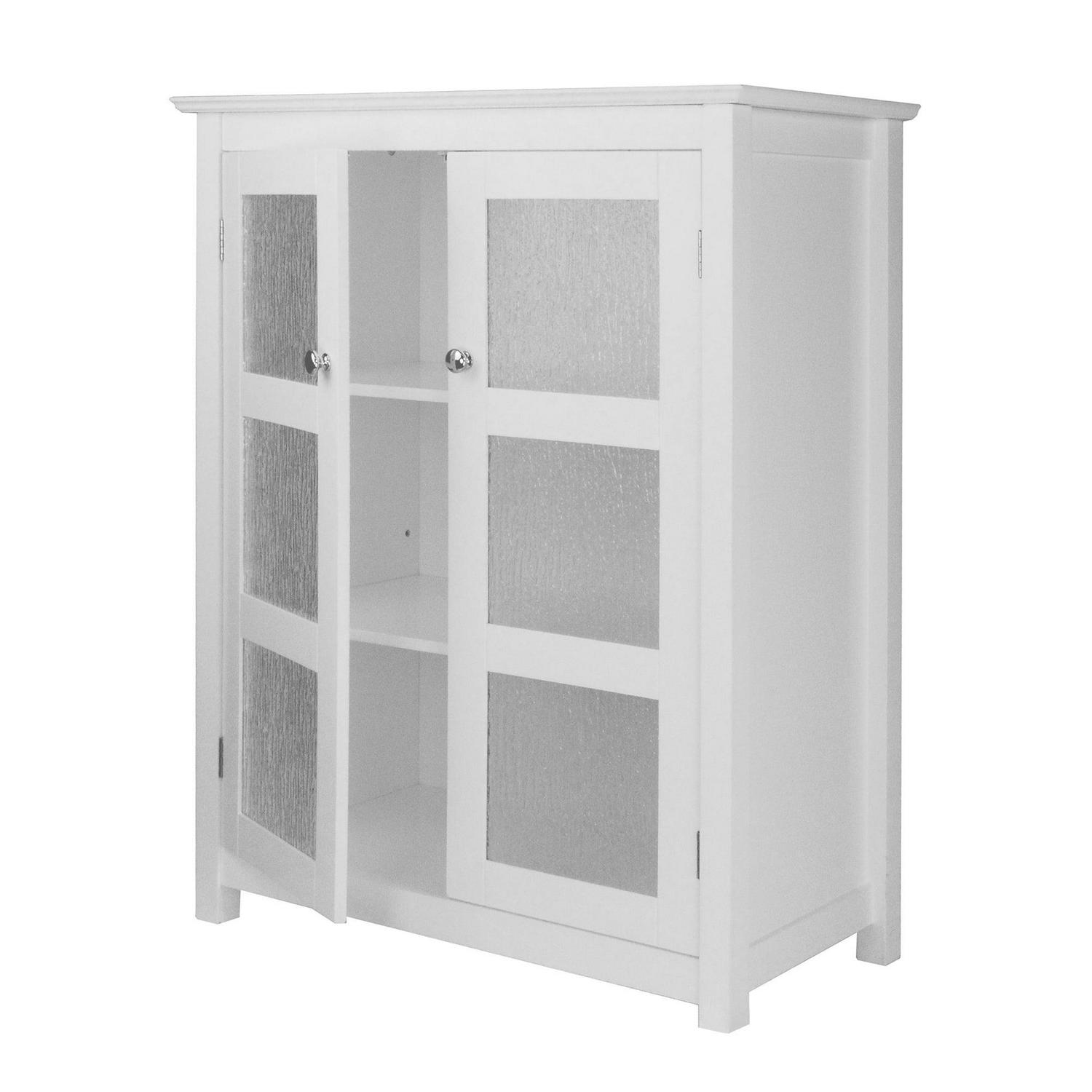 Upgrade your home storage while adding classic style with the Teamson Home Connor 2 Door Floor Cabinet with Adjustable Shelf. This understated floor cabinet features a timeless white finish with double-plated knobs and 2 doors paneled with modern, water-textured glass for a beautiful addition to your space. The included adjustable shelf makes this floor cabinet a functional and customizable solution to your storage needs. Constructed from durable engineered wood, this storage unit is built to provide you with long-lasting organization. Easy, step-by-step instructions and all of the hardware needed for installation are included for quick assembly. Purchase this stylish cabinet alone or with other items from the Connor collection for a cohesive, updated look.