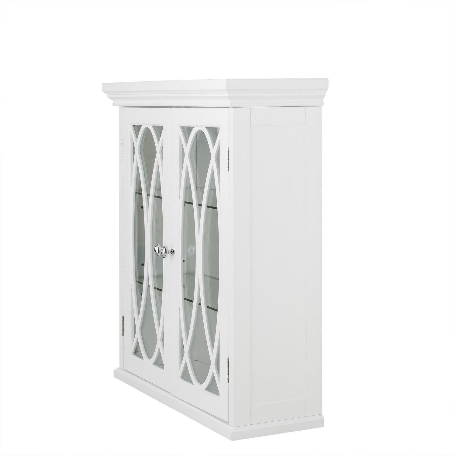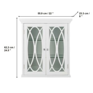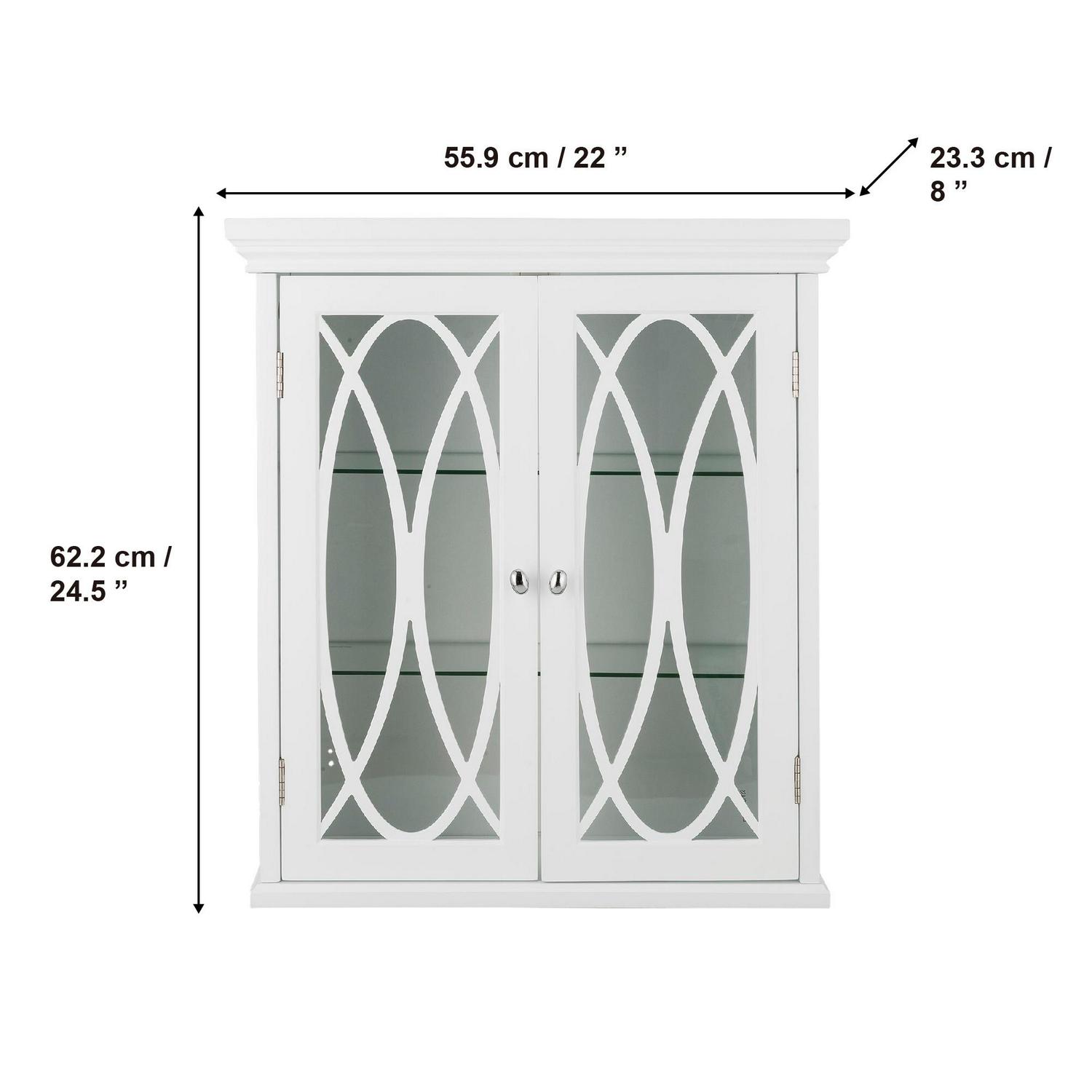 Upgrade your home storage while adding classic style with the Teamson Home Florence 2 Door Wooden removable Wall Cabinet with Adjustable Shelves. This stylish storage solution features a timeless white finish with 2 doors and oval-shaped knobs that are finished in satin nickel for a timeless addition to your space. The 2 included adjustable glass shelves provide ample storage to reduce clutter and keep your home tidy. Constructed from durable engineered wood and tempered glass, this wall cabinet is built to provide you with long-lasting organization. Easy, step-by-step instructions and all of the hardware are included for quick assembly. Purchase this stylish cabinet alone or with other items from the Florence collection for a cohesive, updated look. The Teamson Home Florence 2 Door Wooden Removable Wall Cabinet with Adjustable Shelves measures 22″ x 8″ x 24.5″ to provide removable storage without taking up too much space in your living area.