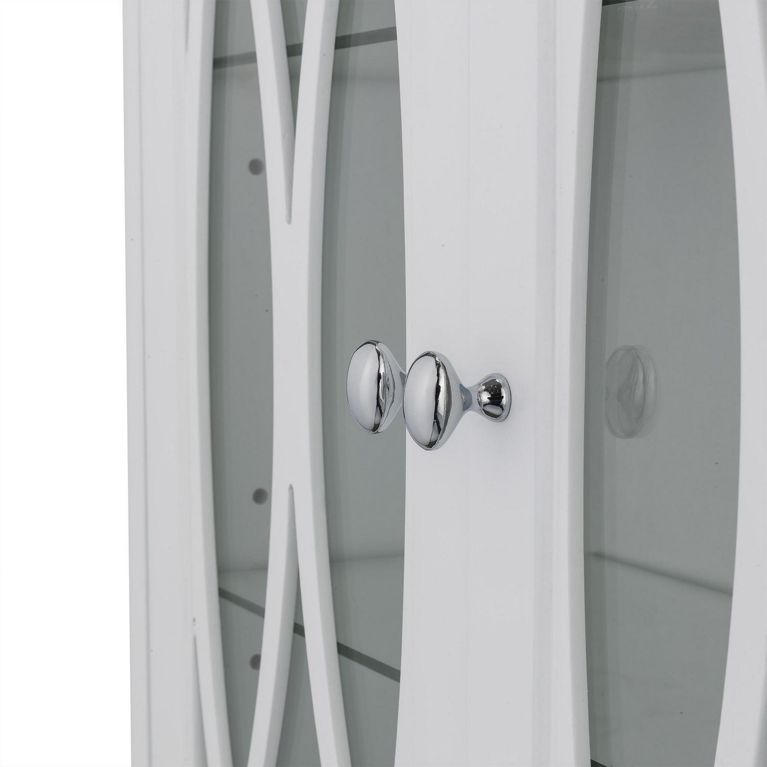 – STYLISH CABINET: Features a timeless white finish with two doors and oval-shaped knobs that are finished in satin nickel for a timeless addition to your space.