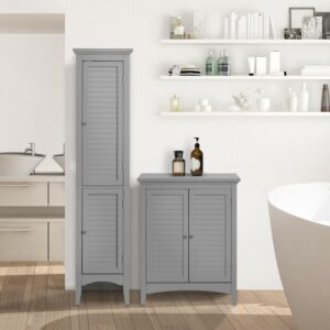 Teamson Home Glancy Wooden Linen Tower Cabinet with Storage, Gray