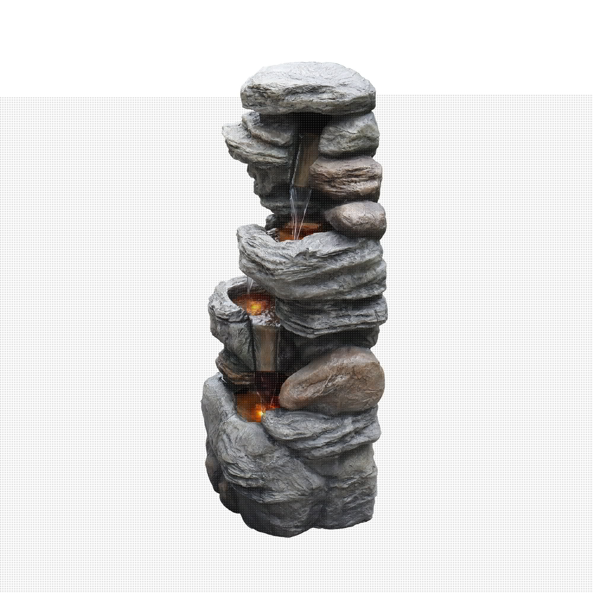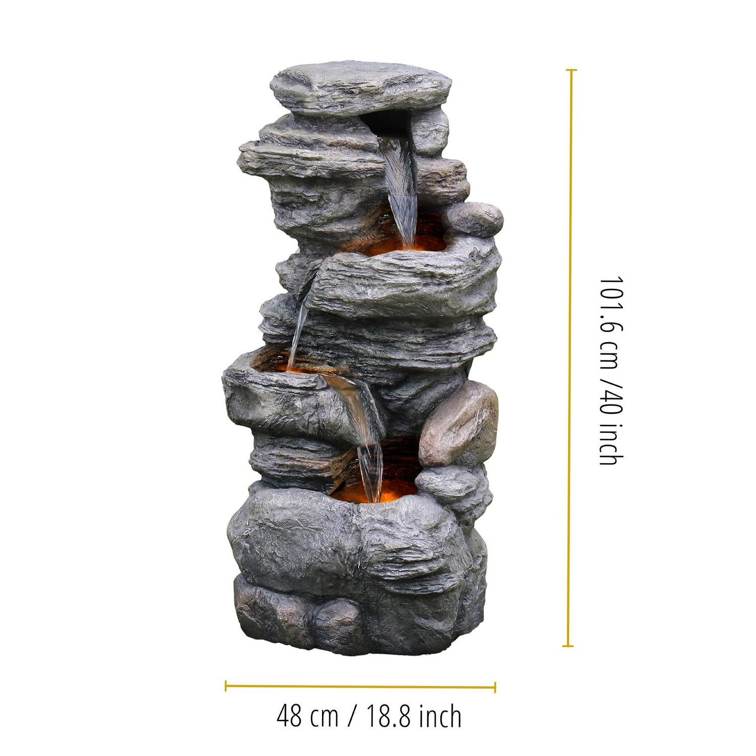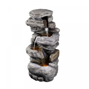 – DECORATIVE WATER FOUNTAIN: Features four tiers and a realistic stacked stone design for a tranquil and soothing addition to your porch, backyard, or lawn.