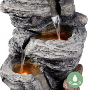 – BUILT-IN LED LIGHTS: Included LED lights keep the fountain illuminated to add a soft glow to your garden so you can relax to the sounds of the peaceful water flow.