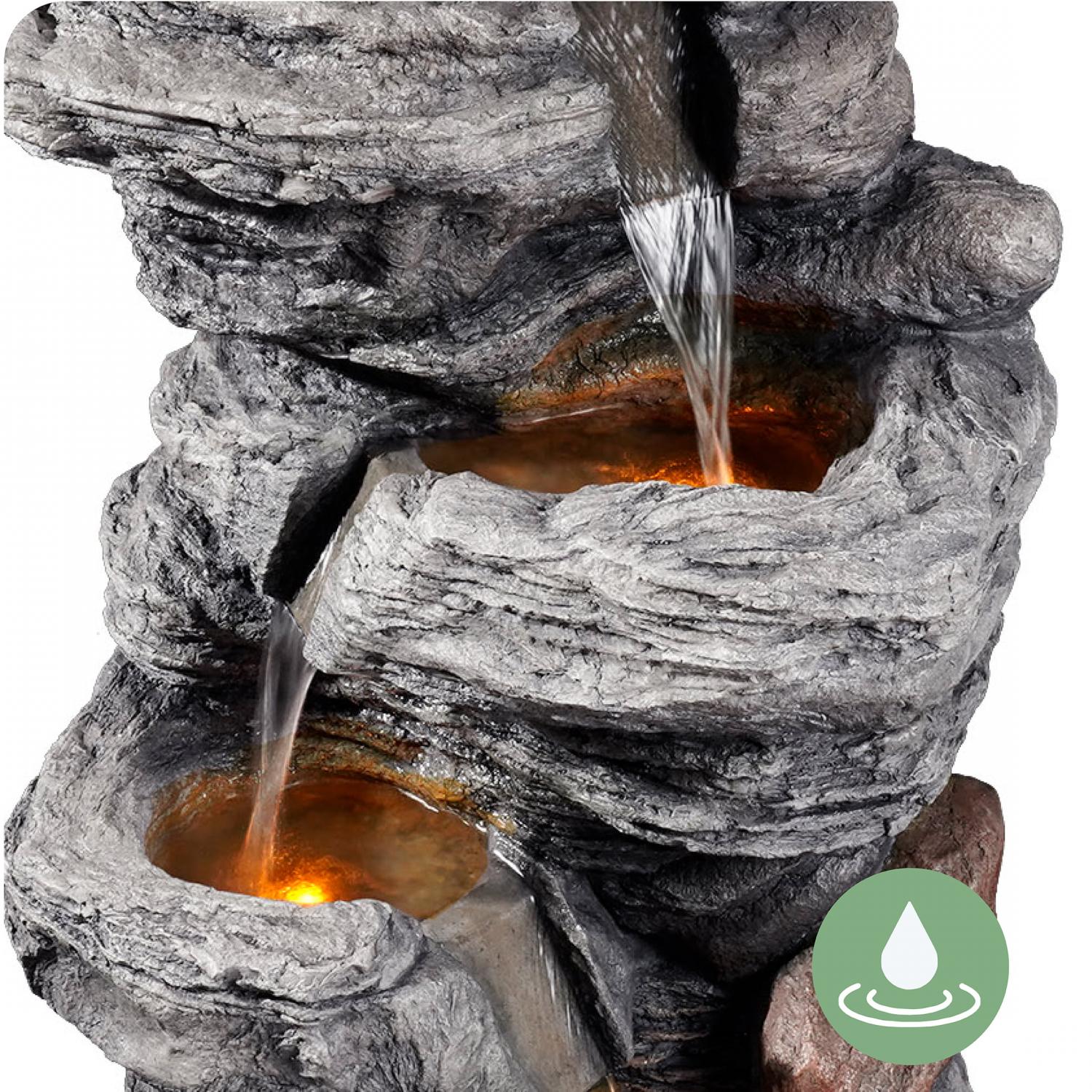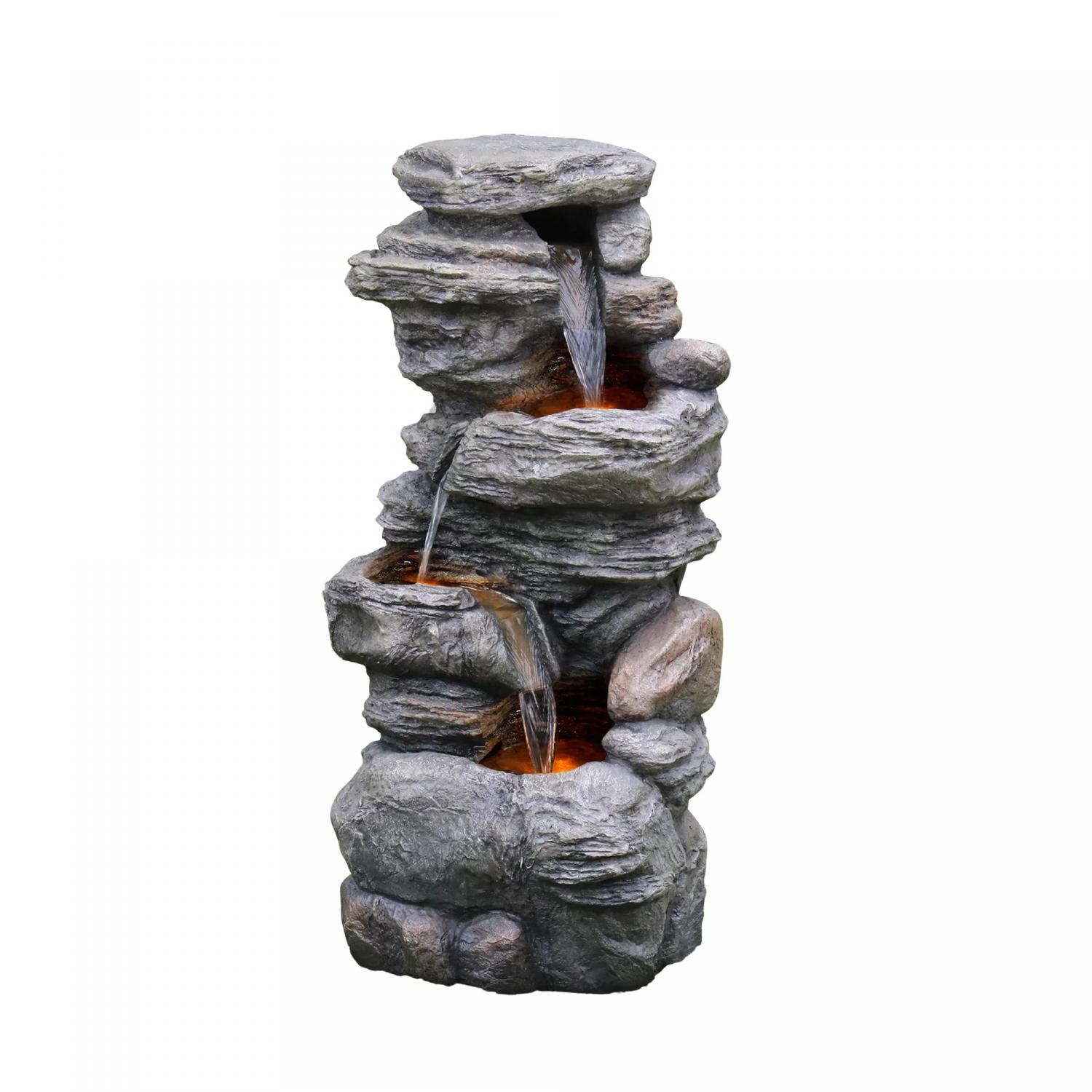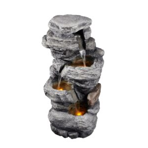 Teamson Home Indoor/Outdoor 4-Tier Stacked Stone-Look Tall Waterfall Fountain with LED Lights