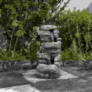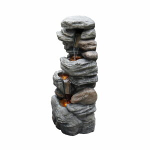 Turn your home’s outdoor area into a relaxing oasis with the Teamson Home Indoor/Outdoor 4-Tier Stone-Look Waterfall Fountain with LED Lights. This outdoor waterfall fountain features four tiers and a stacked stone design for a tranquil and soothing addition to your porch, backyard, or lawn. Constructed from durable polyresin and stone powder with a natural look and realistic textures, the fountain is weatherproof and rust-resistant. The built-in LED lights keep this fountain illuminated to add a soft glow to your space. Relax to the sounds of the water flow as it trickles down along the tiers to the basin below for a peaceful escape. For convenient setup, the fountain includes a pump and all necessary parts for installation without the need to purchase additional hardware. This outdoor fountain measures 18″ x 13″ x 39.5″ to easily fit in almost any outdoor space.