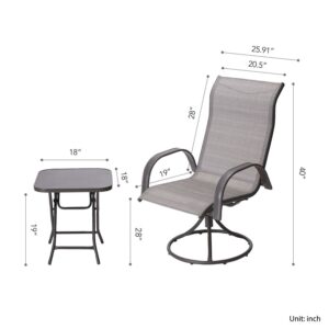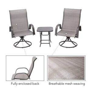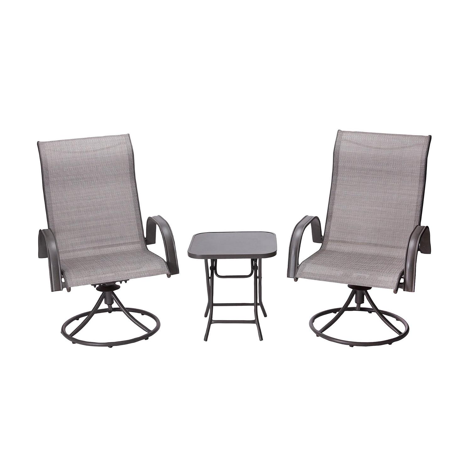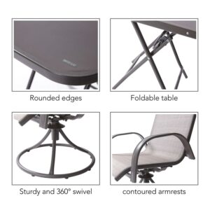 Teamson Home Indoor-Outdoor Furniture, 3-Piece Metal Bistro Set, 2 Textelene Swivel Chairs and 1 Foldable Table for Patio, Garden, Backyard