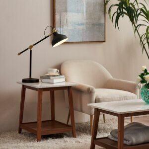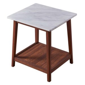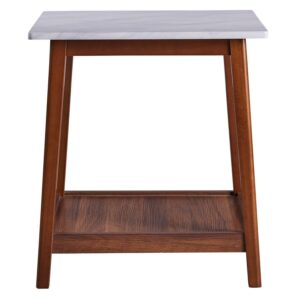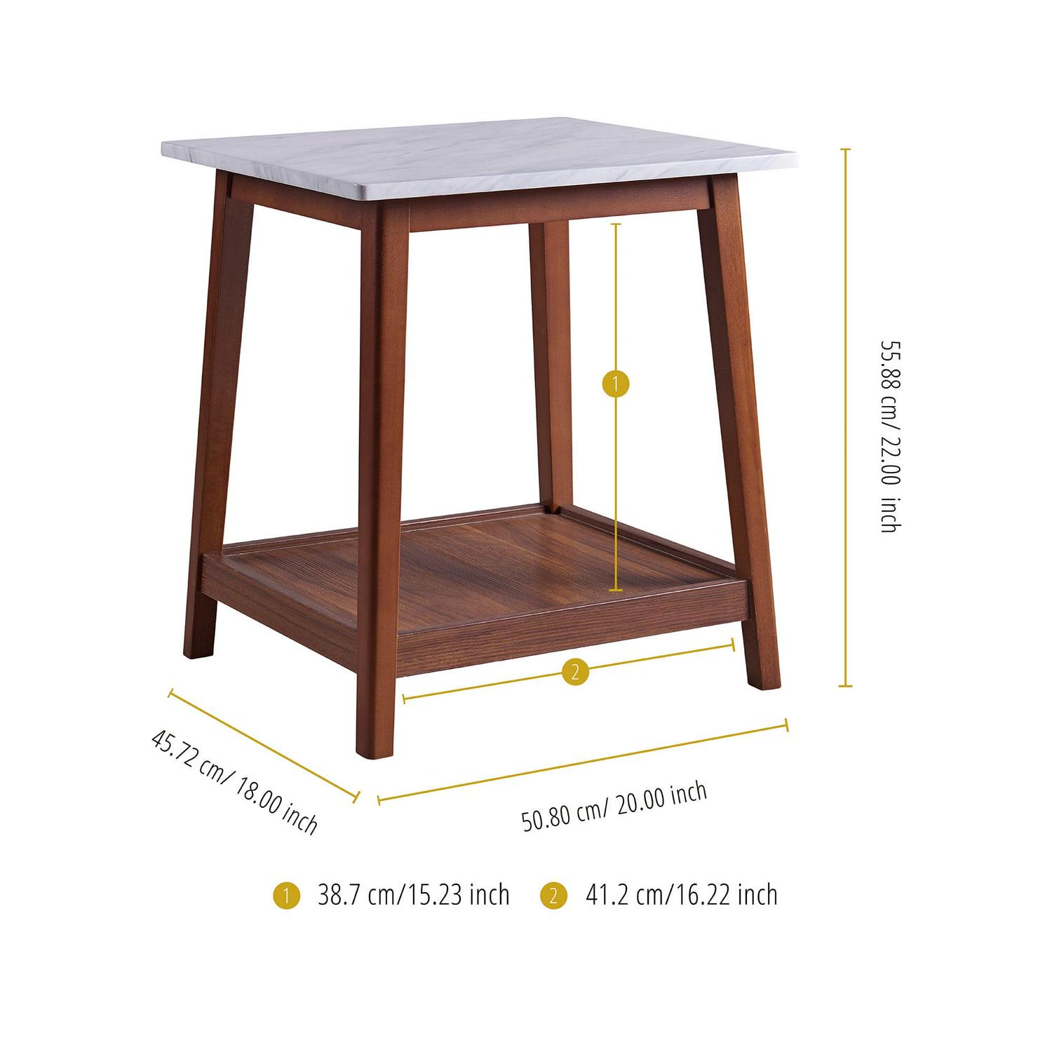 Teamson Home Kingston Wooden Side Table with Square Faux Marble Top and Shelf, White/Walnut