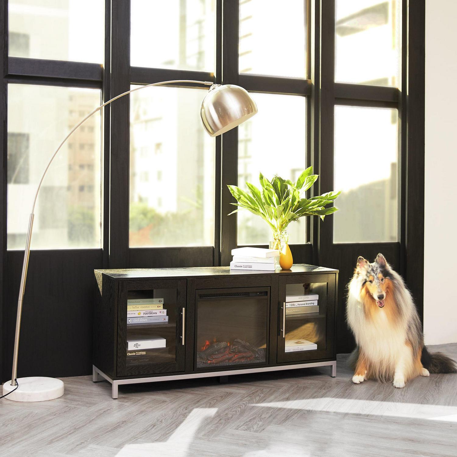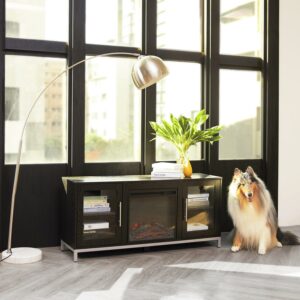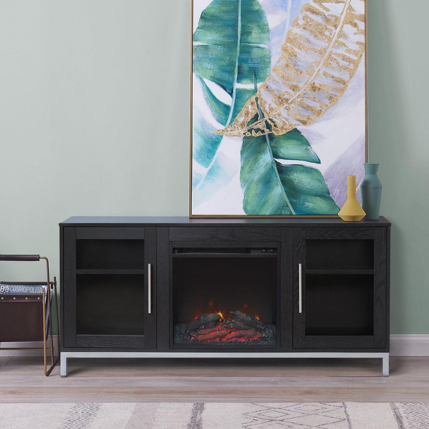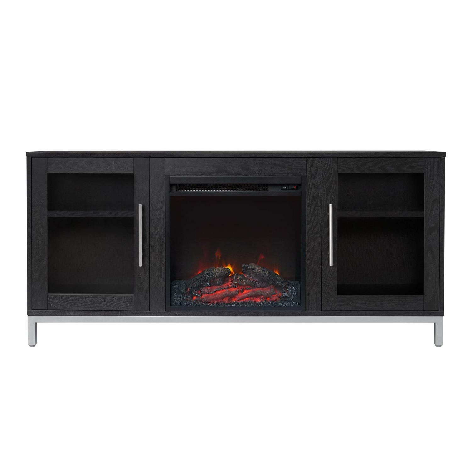 Teamson Home Lainey 54 TV Console Stand for TVs up to 65 with Built-In Electric Fireplace, Black/Silver