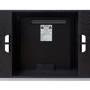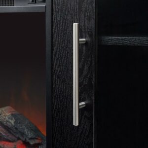 Add warmth and style to your interior space with the Teamson Home Lainey Modern 54″ TV Stand with Built-In Electric Fireplace. This media stand features a classic look with a black finish to add a decorative and functional accent to your living area, and it is UL1678 standard qualified to accommodate up to 65″ flat panel TVs with a maximum weight of 80 lbs. The built-in 4600 BTU electric fireplace has variable flame effect and heating element and that can heat a room up to 400 sq. ft. in size. This unit comes with a convenient plug-in design for easy setup. To keep your living space organized, this media stand is designed with two cabinets with glass-paneled doors and adjustable shelves with a maximum weight of 50 lbs. each for storing media and gaming accessories, and two cable management cutouts on the back help to keep cords tidy. For quick installation, this TV stand includes step-by-step instructions. Made of high-quality MDF, this TV stand is built for long-lasting use. The Teamson Home Lainey 54″ TV Stand with 18″ Fireplace Insert measures 16″ x 54″ x 25.27″ to fit perfectly in your living room, family room, den, gaming room, or movie room.