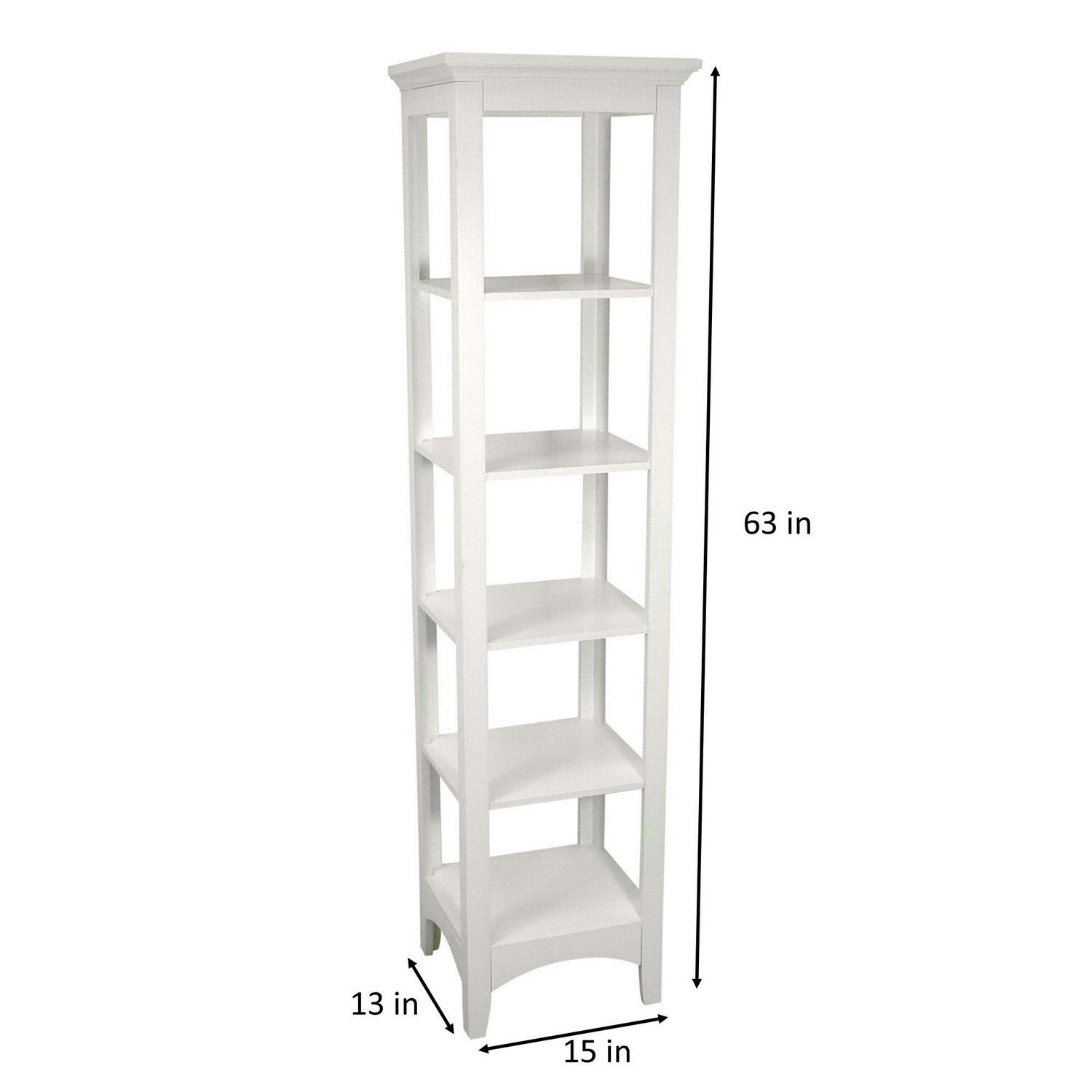 Upgrade your home storage while adding classic decor with the Teamson Home Madison Wooden Linen Tower with 5 Shelves This decorative linen tower features a white finish with arched bottom skirting and a crown molded top for a beautiful addition to your space. The 5 included fixed shelves help to reduce clutter and keep your home tidy. Constructed from durable engineered wood, this linen tower is built to provide you with long-lasting organization. Easy, step-by-step instructions and all of the hardware needed for installation are included for quick assembly. Purchase this stylish linen tower alone or with other items from the Madison collection for a cohesive, updated look. The Teamson Home Madison Wooden Linen Tower with 5 Shelves measures 13″ x 15″ x 63″ to provide accessible storage without taking up too much space in your living area or bathroom.