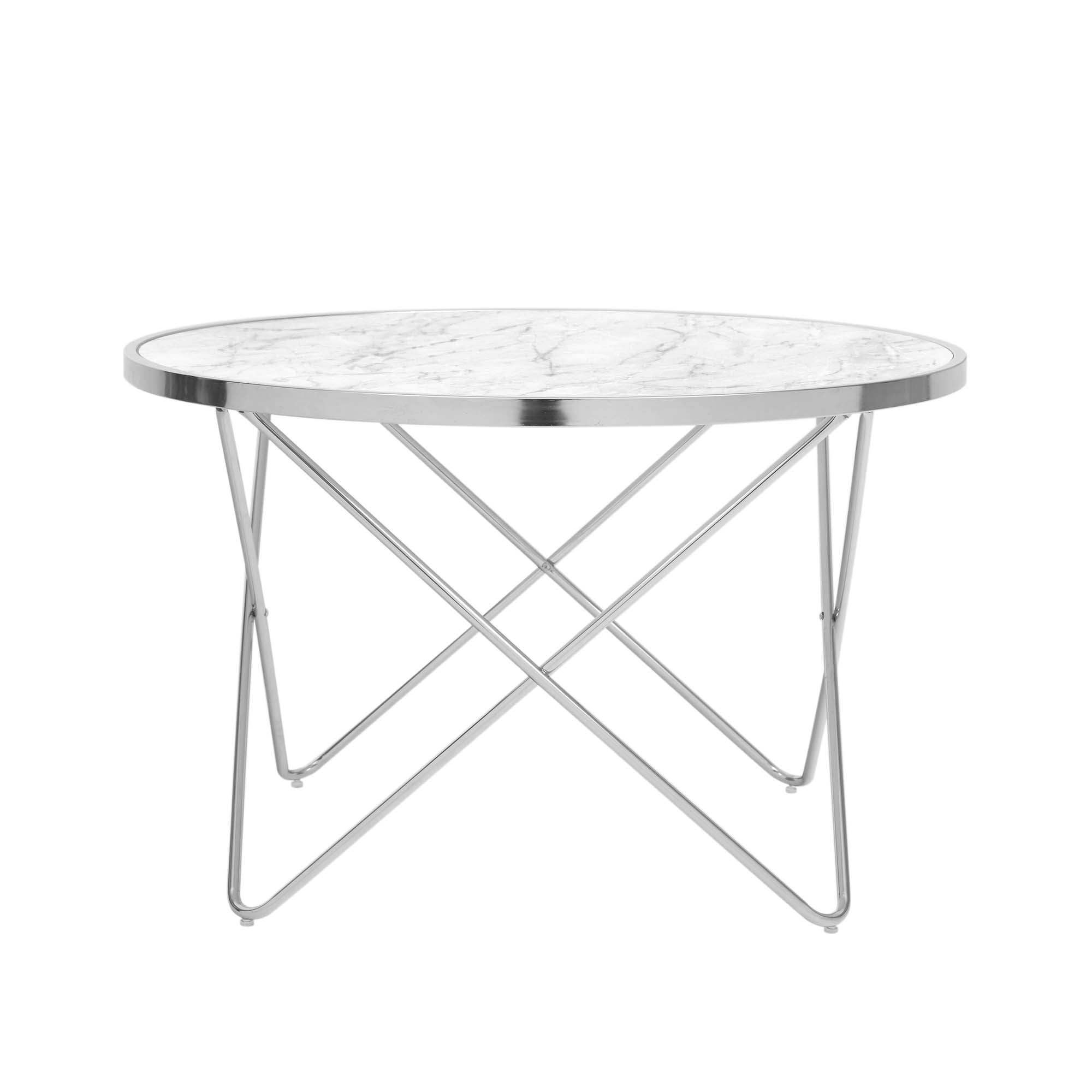Teamson Home Margo Small Round Faux White Carrara Marble Coffee Table, White