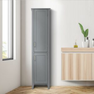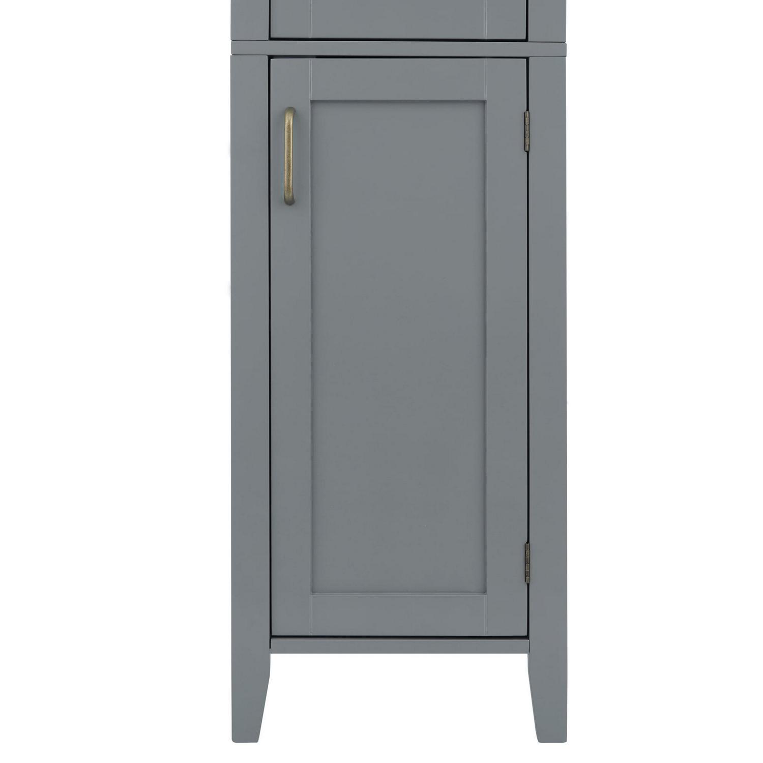 – STYLISH LINEN TOWER CABINET: Features a sleek gray finish with double doors and brass pull hardware for an elevated and stylish addition to your space.