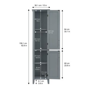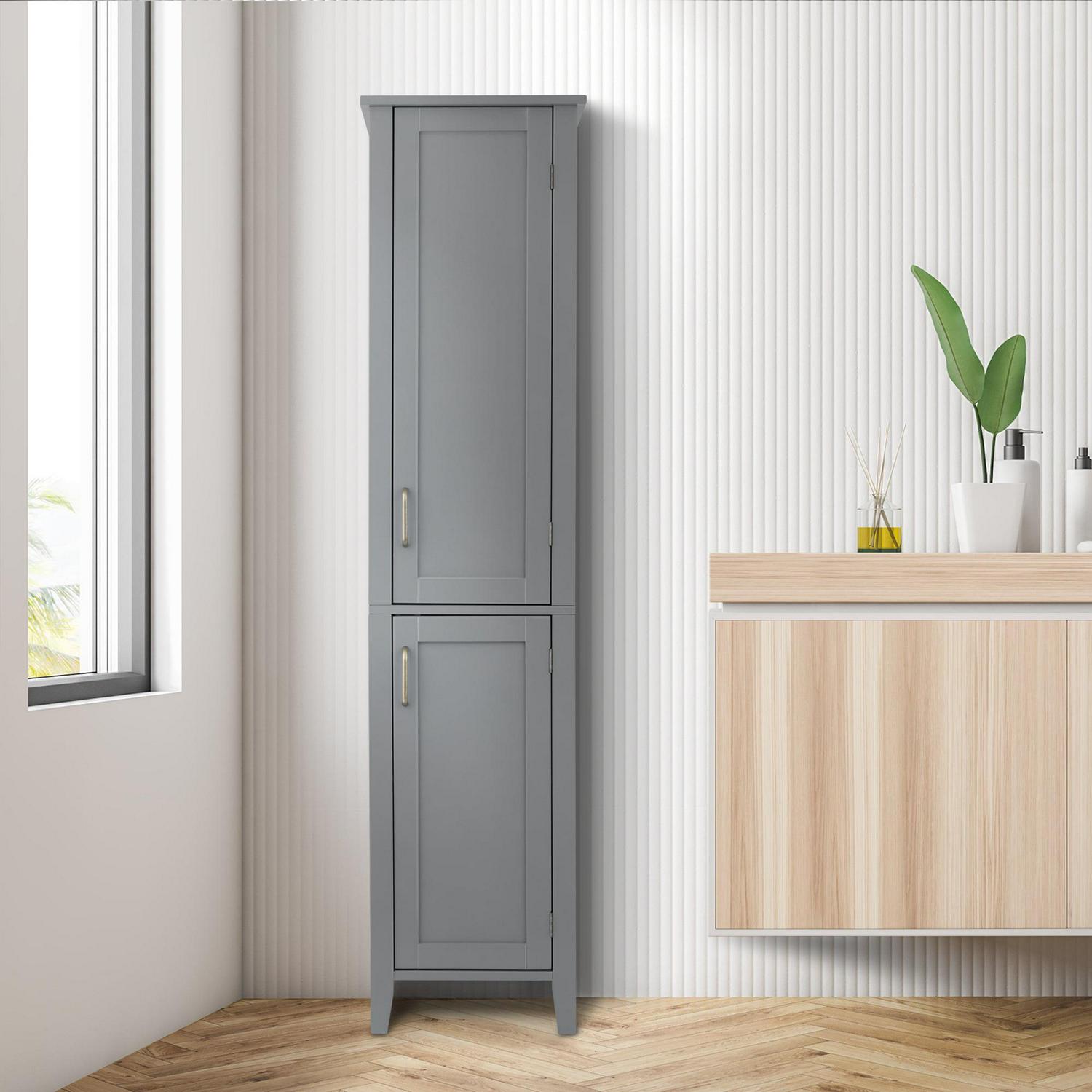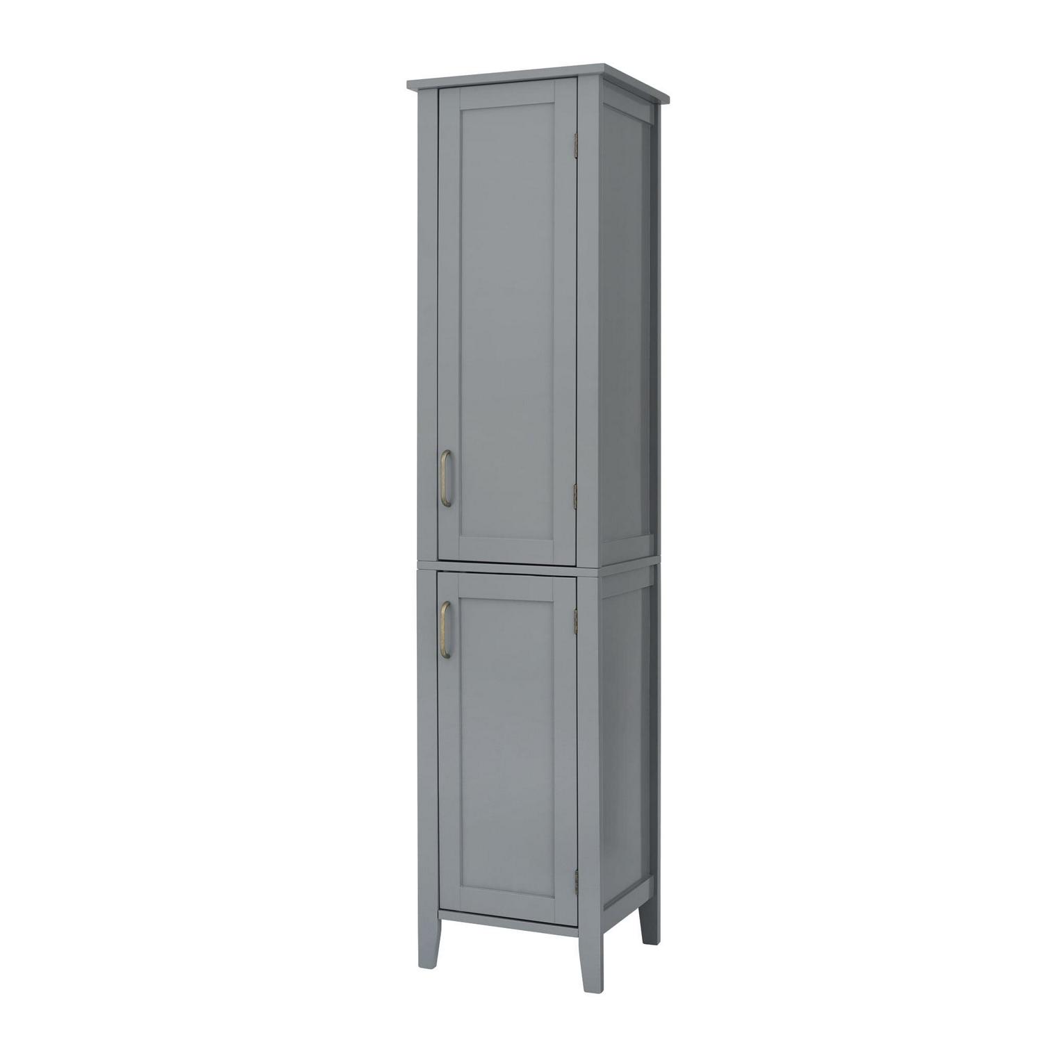 Teamson Home Mercer Mid Century Modern Bathroom Linen Tower Storage with Two Doors, Gray