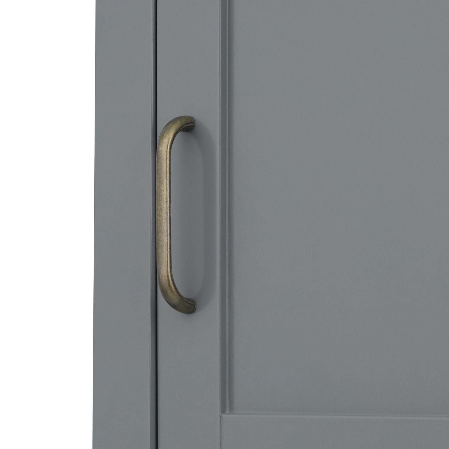 Upgrade your home storage while adding mid-century modern decor with the Teamson Home Mercer Mid Century Modern Wooden Linen Tower Cabinet. This decorative cabinet features a gray finish with two doors and brass pulls for an elevated and stylish addition to your space. The two interior adjustable shelves provide storage for extra towels, linens, blankets, toiletries, and more to keep your home tidy. Constructed from durable engineered wood, this floor cabinet is built to provide you with long-lasting organization. Easy, step-by-step instructions and all of the hardware needed for installation are included for quick assembly. Purchase this stylish cabinet alone or with other items from the Mercer collection for a cohesive, updated look. The Teamson Home Mercer Wooden Linen Tower Cabinet with 2 Doors measures 13″ x 15″ x 62.67″ to provide accessible storage without taking up too much space in hallways or the bathroom.