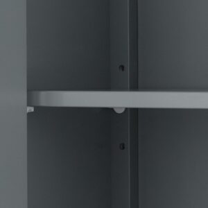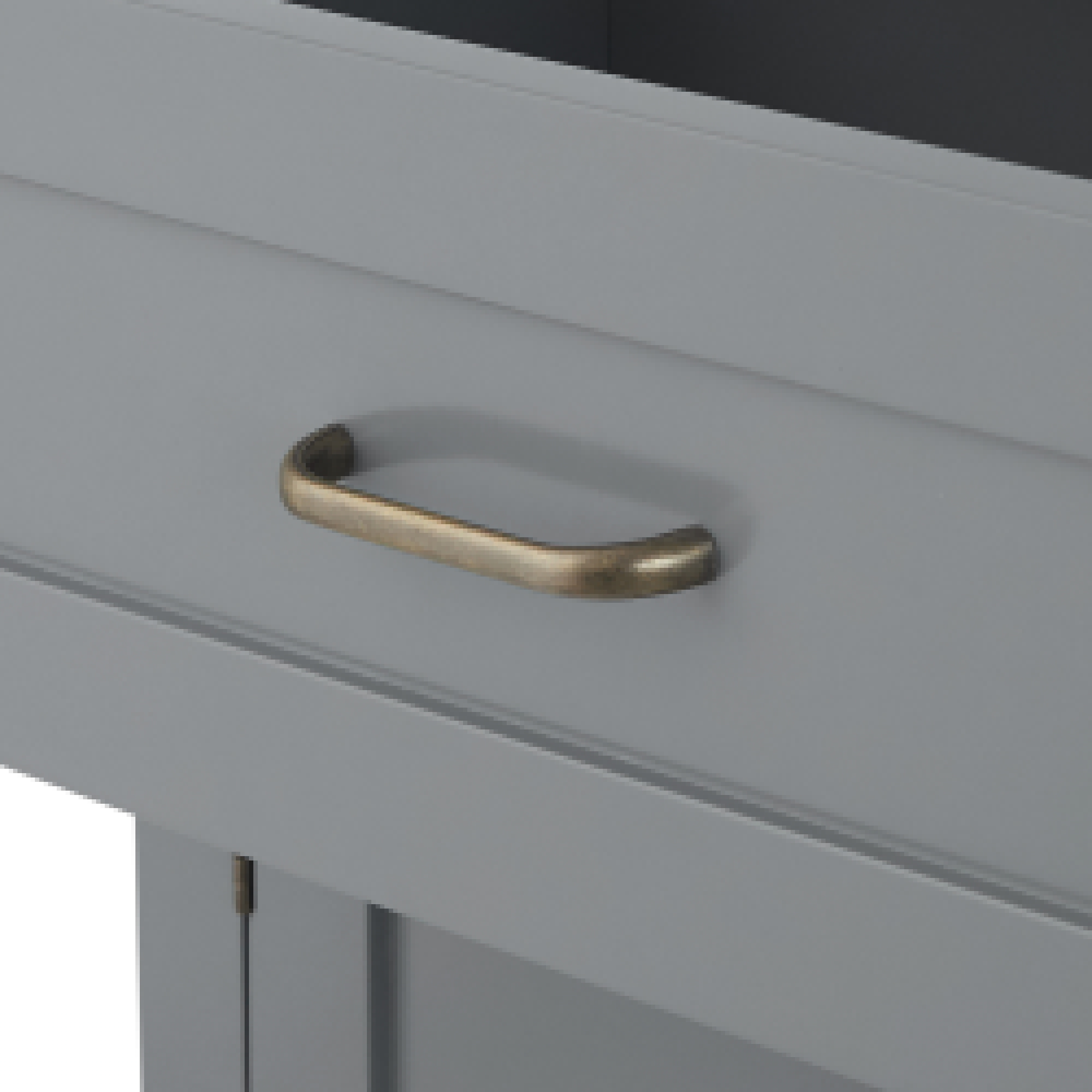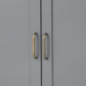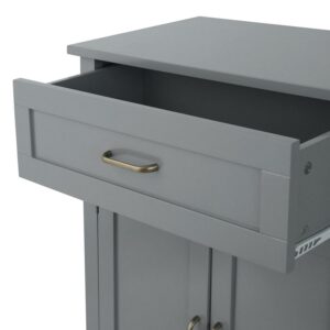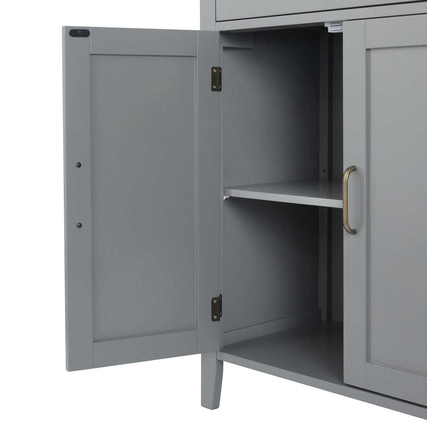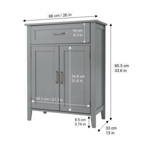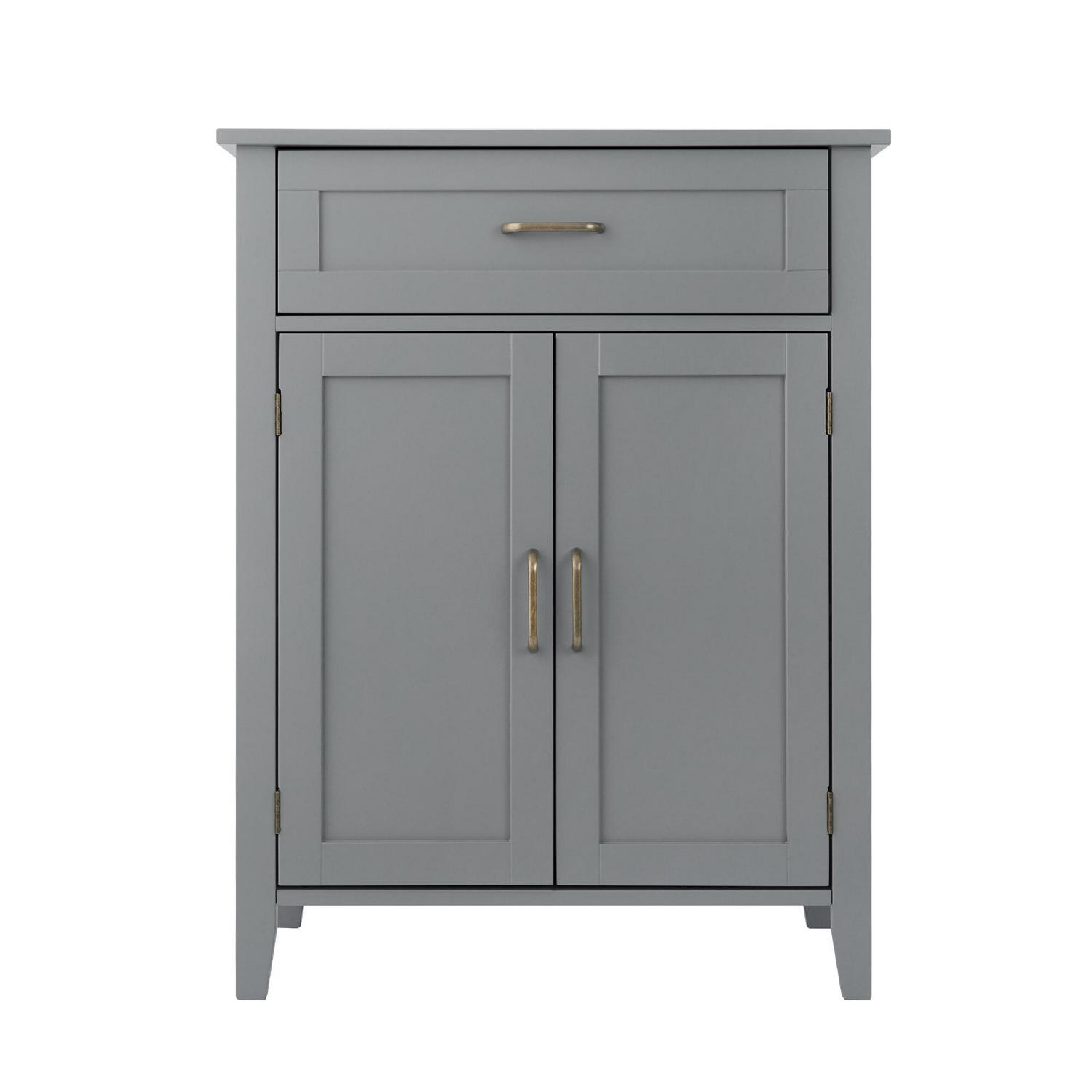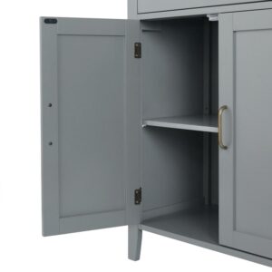 – STYLISH FLOOR CABINET: Features a sleek gray finish with double doors and brass pull hardware for an elevated and stylish addition to your space.