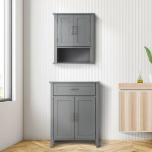 Teamson Home Mercer Mid Century Modern Wooden Floor Storage Cabinet, Gray