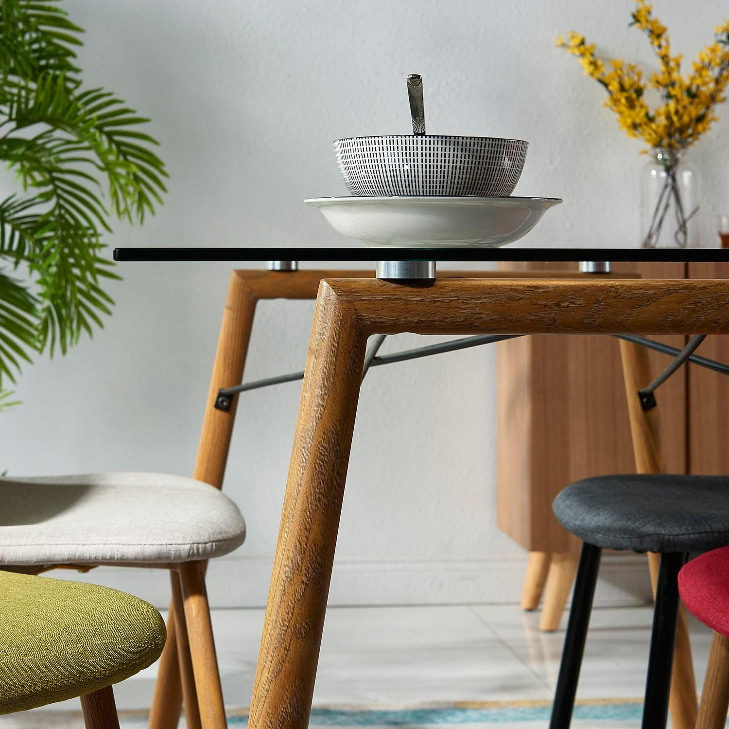 Teamson Home Minimalist Glass Top Dining Table with Wood Base, Natural