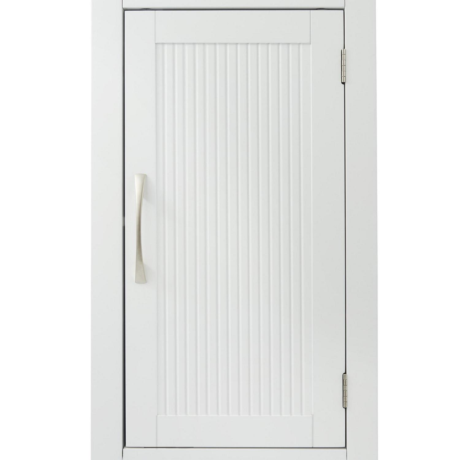– STYLISH LINEN TOWER CABINET: Features a white finish with flat beaded shaker door and brushed nickel pulls for an elevated and stylish addition to your space.