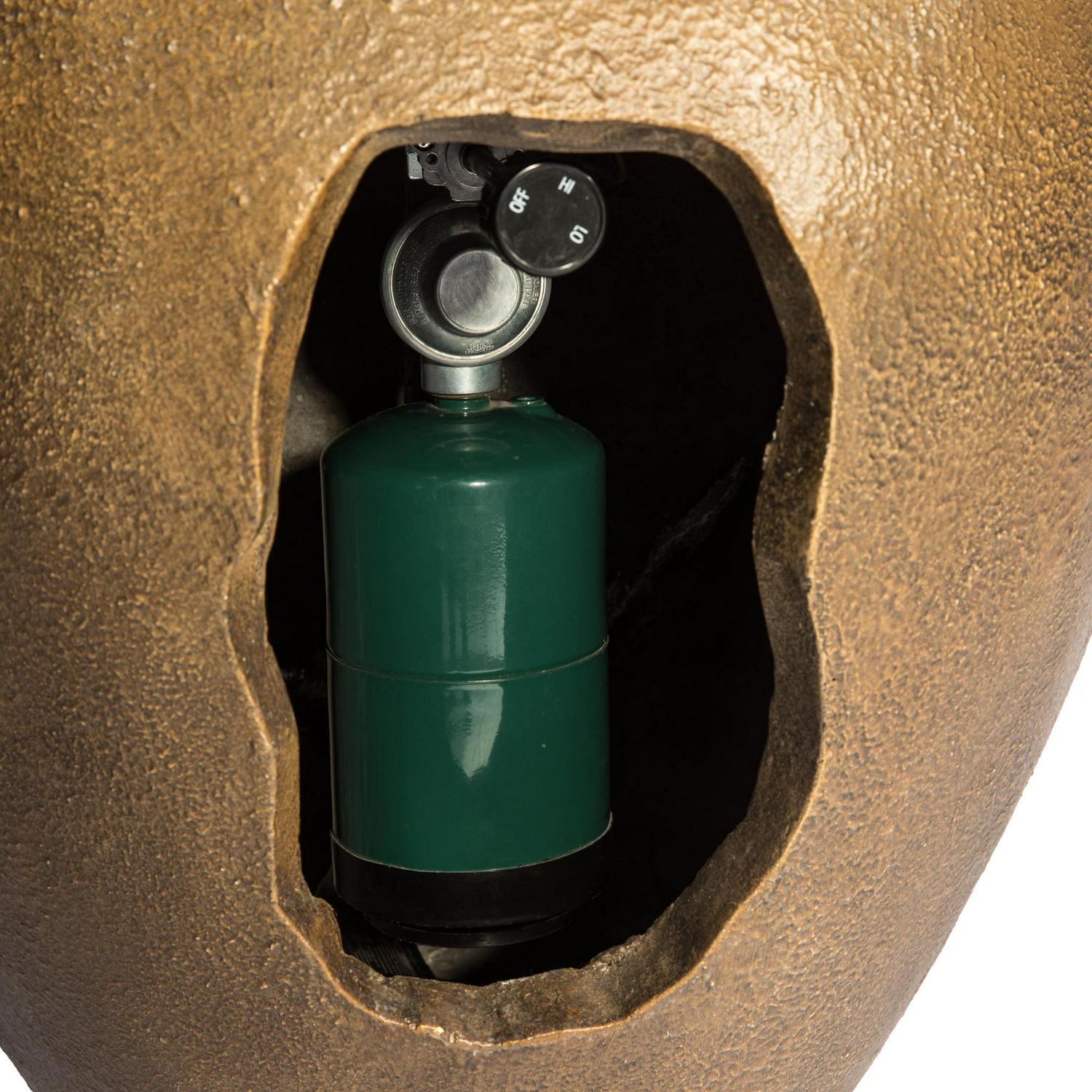 – DIMENSIONS: Fountain measures 19.5″ long, 17.75″ deep, and 22″ tall. The fire pit uses a 1 pound gas tank, not included