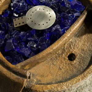 – INCLUDED: One freestanding water fountain pot features a fire pit with blue fire glass and burning torch on top. BTU: 8,000. Water Capacity: 1.72 gallons