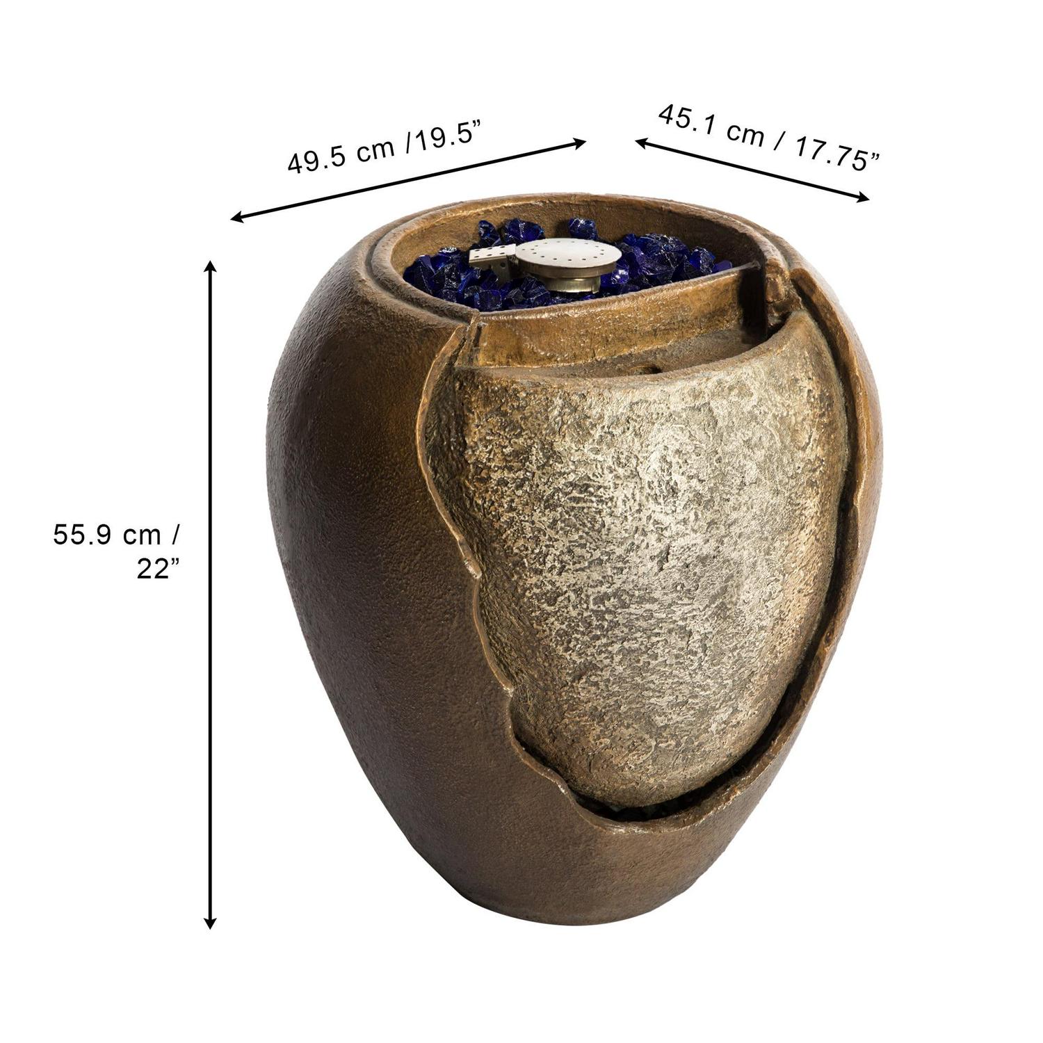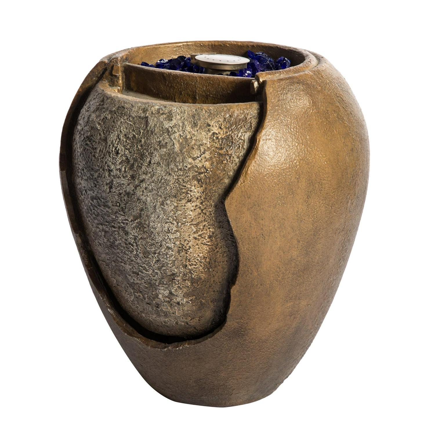 Teamson Home Outdoor 22 Inch Water Fountain Pot with Fire Pit and Fire Glass, Brown