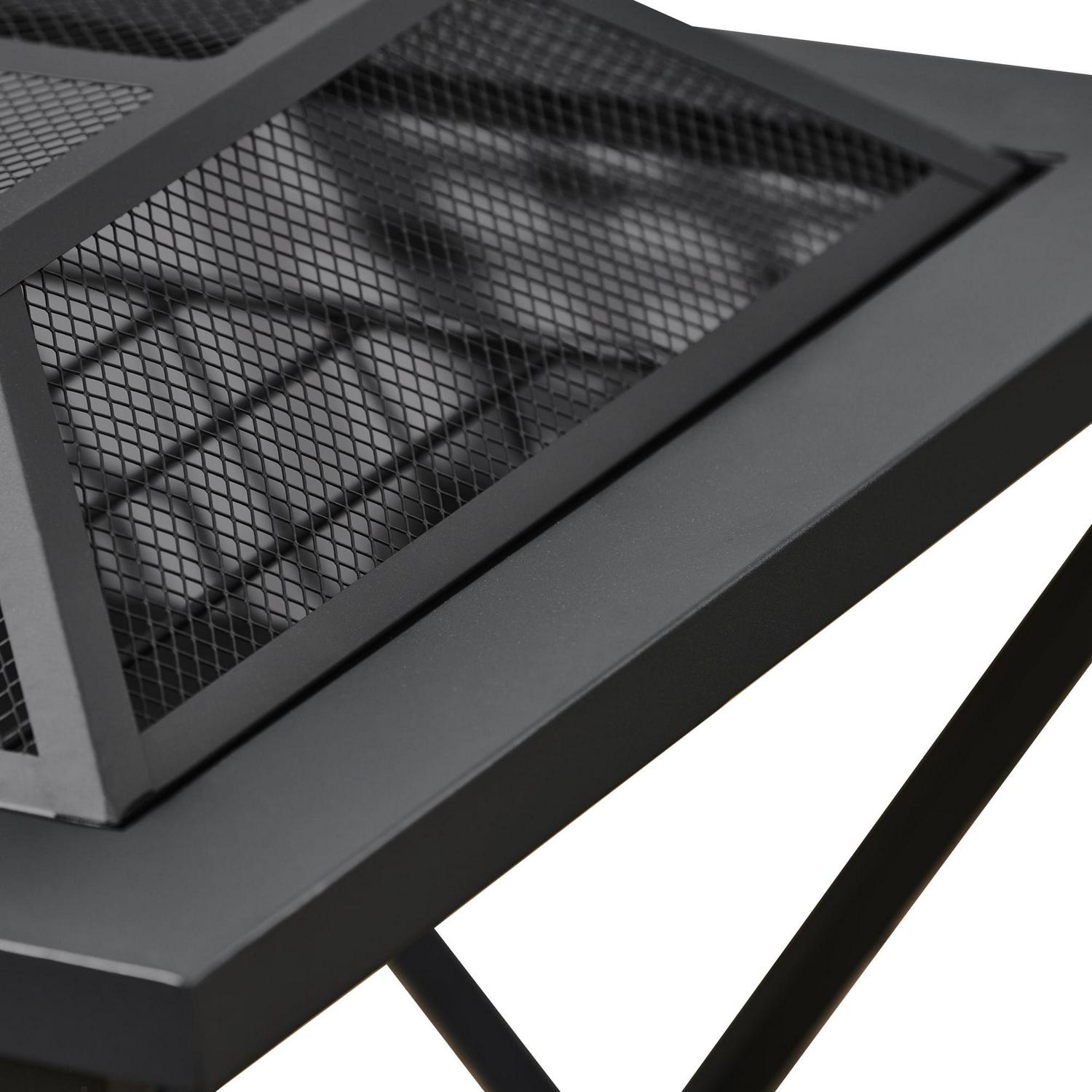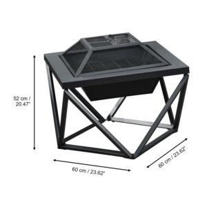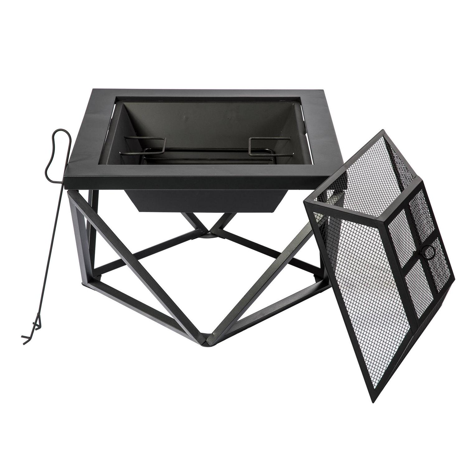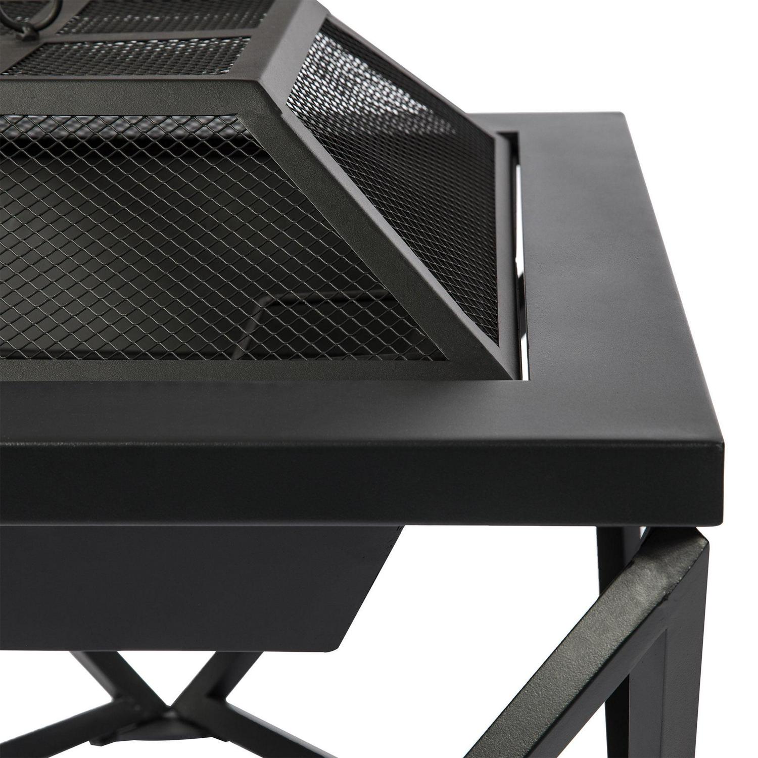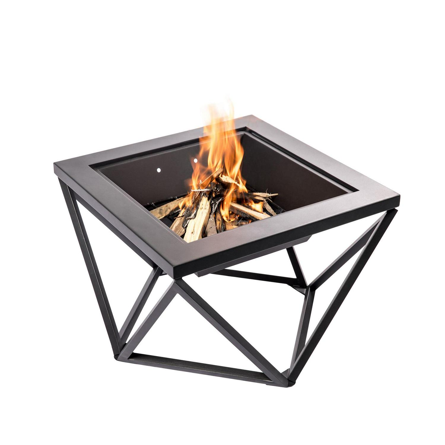 – 24 in. wood burning fire pit: Features a modern square shape and geometric metal base to add warmth and ambience to your backyard, patio, deck, porch, or any outdoor space