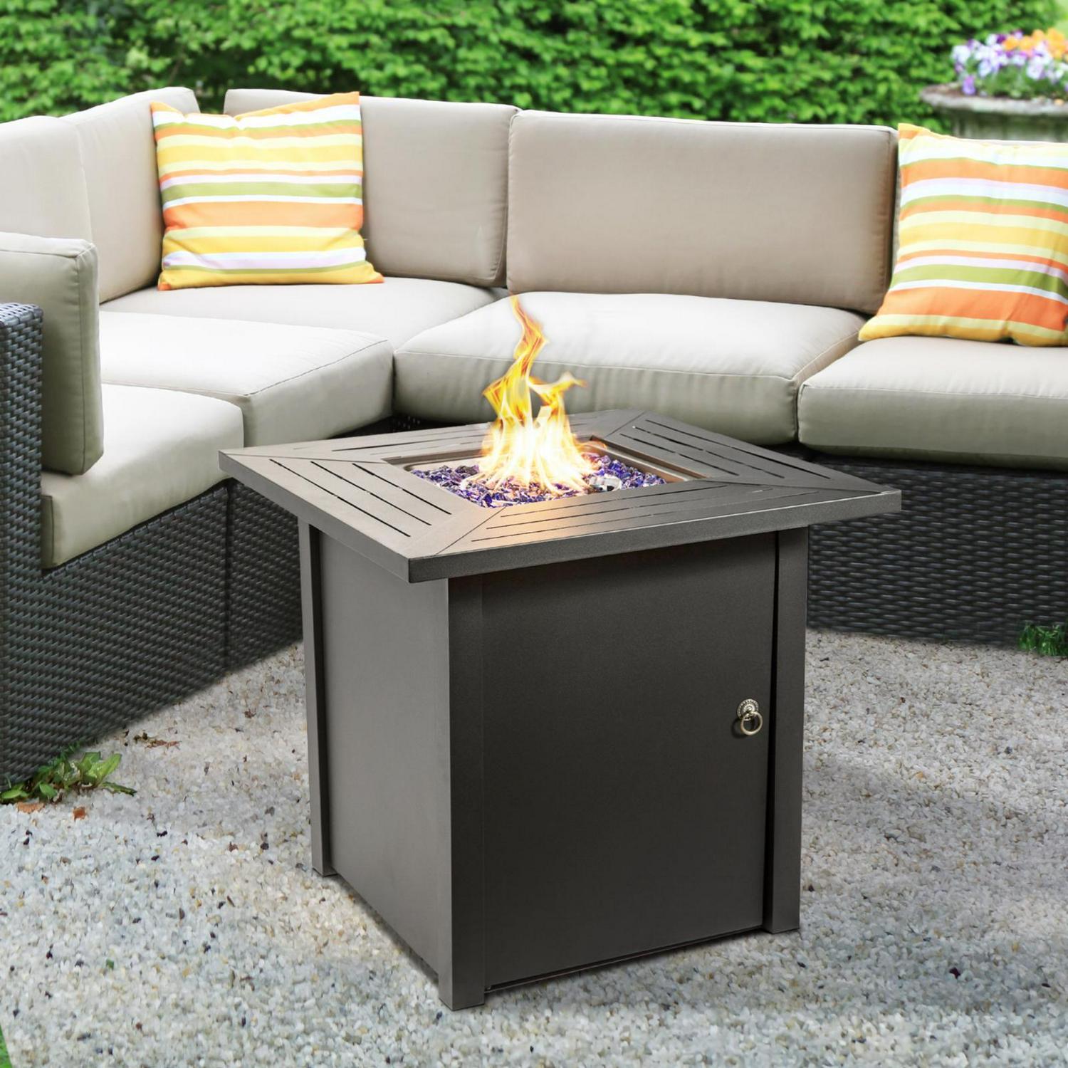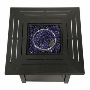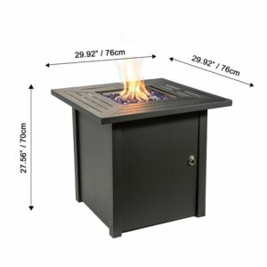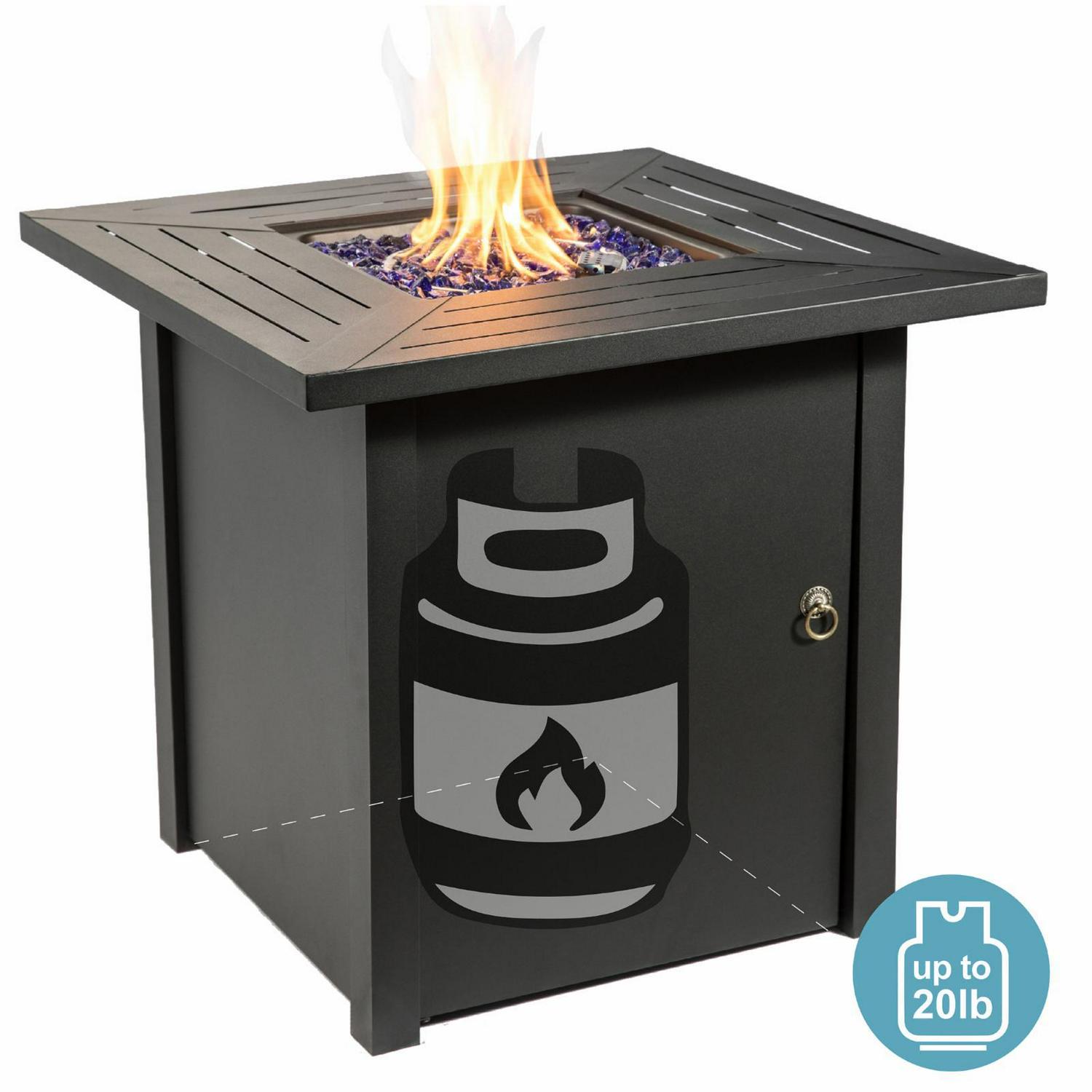 Bring warmth and timeless decor to your home’s outdoor area with the Teamson Home Outdoor Square 30 In. Propane Gas Fire Pit with Steel Base. This contemporary gas fire pit features a modern look to add warmth and a calming atmosphere to your porch, deck, or yard. This fire pit is rated for 40,000 BTUs and creates an ambient display as the green-burning flames dance across the included 11 lbs. of glass rocks. This gas fire pit’s integrated ignition, included hose, and easy controls provide hassle-free operation and installation. To protect your fire pit from the elements while it’s not in use or convert it into an outdoor dining table, a lid is included. Add one or more of these fire pits to your garden or patio to create a warm environment that turns your yard into an outdoor oasis.